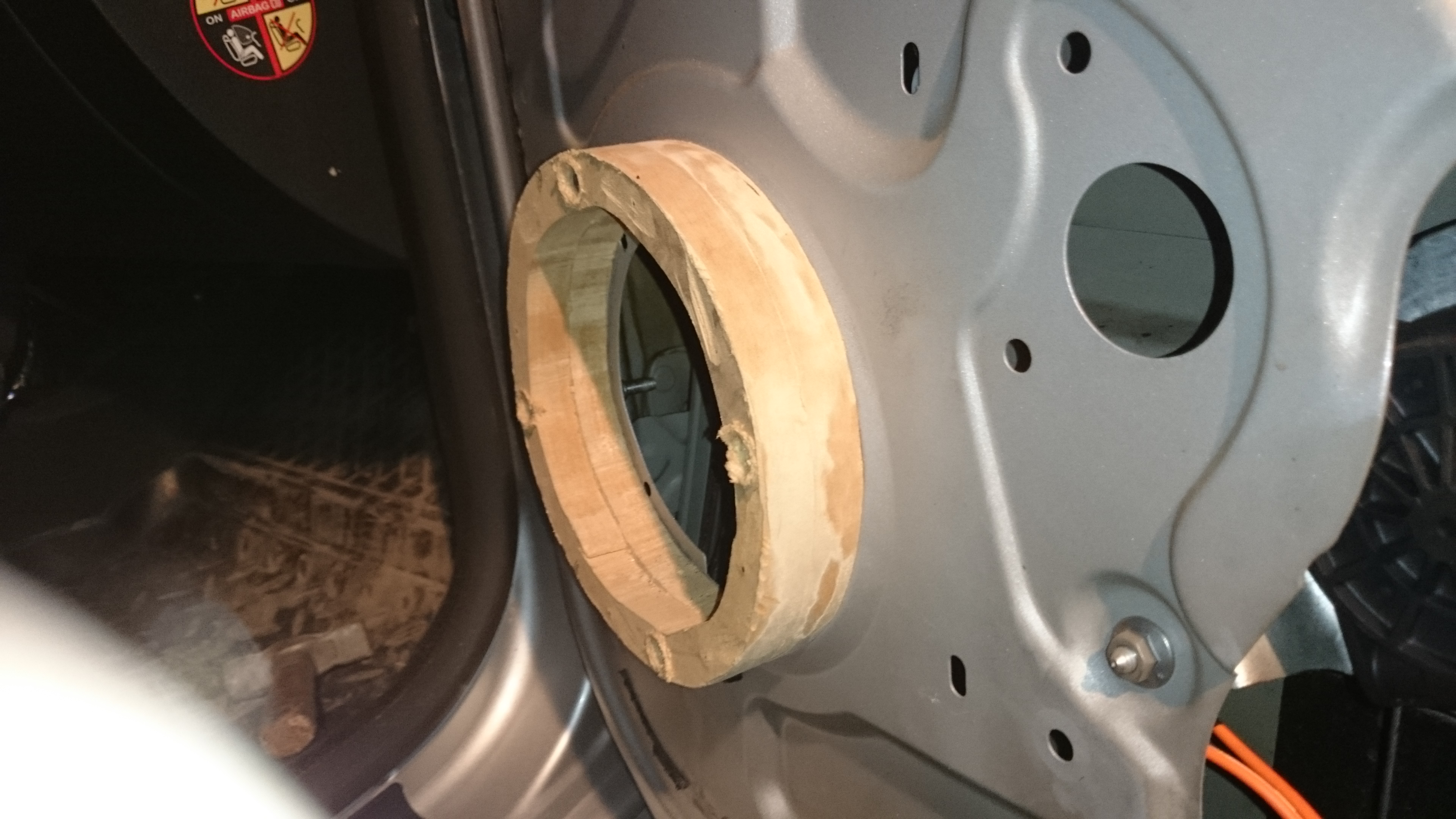 Снимаем динамик, http://duster-clubs.ru/forum/attachm...1&d=1428441915 снимаем обивку двери http://duster-clubs.ru/forum/attachm...1&d=1427569798 Далее нам понадобится лист МДФ толщиной 12мм, карандаш, лобзик, http://duster-clubs.ru/forum/attachm...1&d=1427569798 трафарет вырезанный из коробки динамика http://duster-clubs.ru/forum/attachm...1&d=1427569798 Вырезаем трафарет и ... http://duster-clubs.ru/forum/attachm...1&d=1427569798 карандашом производим разметку по трафарету на МДФ. http://duster-clubs.ru/forum/attachm...1&d=1427569798 Лобзиком отпиливаем по 2 проставочных кольца на каждый динамик. http://duster-clubs.ru/forum/attachm...1&d=1427569900 http://duster-clubs.ru/forum/attachm...1&d=1427569798 http://duster-clubs.ru/forum/attachm...1&d=1427569798 Далее будем заниматься картой двери. Сначала отрезаем приливы пластика, отмеченные красным цветом http://duster-clubs.ru/forum/attachm...1&d=1427569798 http://duster-clubs.ru/forum/attachm...1&d=1427569798 Работу проводим лобзиком, предварительно демонтировав с него основание. http://duster-clubs.ru/forum/attachm...1&d=1427569900 В результате получается вот так http://duster-clubs.ru/forum/attachm...1&d=1427569900 Далее отрезаем другие приливы пластика, отмеченные красным цветом http://duster-clubs.ru/forum/attachm...1&d=1427569900 В результате получается вот так http://duster-clubs.ru/forum/attachm...1&d=1427569900 http://duster-clubs.ru/forum/attachm...1&d=1427569900 Откладываем обивку двери в сторону и приступаем к проставкам. Сначала при помощи саморезов соединяем две проставки между собой http://duster-clubs.ru/forum/attachm...1&d=1427569900 http://duster-clubs.ru/forum/attachm...1&d=1427569900 Далее берем болты 6х45мм или 8х45мм (в моем случае) http://duster-clubs.ru/forum/attachm...1&d=1427569900 и сверлим для болтов сквозные отверстия в проставках, при этом делая потай для шляпок болтов http://duster-clubs.ru/forum/attachm...1&d=1427569900 Подравниваем наружные края проставок на наждаке. Прикладываем проставки к карте двери с внутренней стороны, отверстие в карте должно быть немного больше диаметра проставок. Прикладываем проставки к металлу двери и прикладываем карту. Центруем проставки относительно отверстия и намечаем в металле двери места для просверливания отверстий для установки проставок. http://duster-clubs.ru/forum/attachm...1&d=1427570061 Просверливаем во внутреннем металле двери отверстия для установки проставок. Производим установку проставок к металлу двери, при этом гайки до конца не затягиваем http://duster-clubs.ru/forum/attachm...1&d=1427570061 http://duster-clubs.ru/forum/attachm...1&d=1427570061 http://duster-clubs.ru/forum/attachm...1&d=1427570061 Прикладывам карту двери на предмет определения зазоров с проставками, которые после контрольной центровки затягиваем гайками окончательно http://duster-clubs.ru/forum/attachm...1&d=1427570061 Устанавливаем на проставки динамик, закрепляя саморезами. http://duster-clubs.ru/forum/attachm...1&d=1427570061 Устанавливаем карту двери, ставим на штатное место родную декоративную решетку динамика http://duster-clubs.ru/forum/attachm...1&d=1427653804 Результат работы: БЫЛО http://duster-clubs.ru/forum/attachm...8&d=1427568437 СТАЛО (=как было=) http://duster-clubs.ru/forum/attachm...1&d=1427570061 Спасибо за внимание! Назад к выбору разделов |