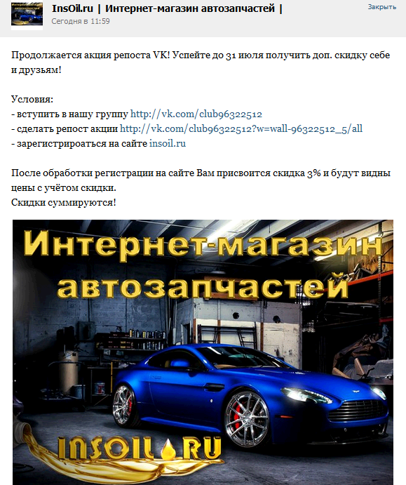 [СПб+Регионы]Интернет-магазин автозапчастей InsOil.ru_Клубная скидка 7%