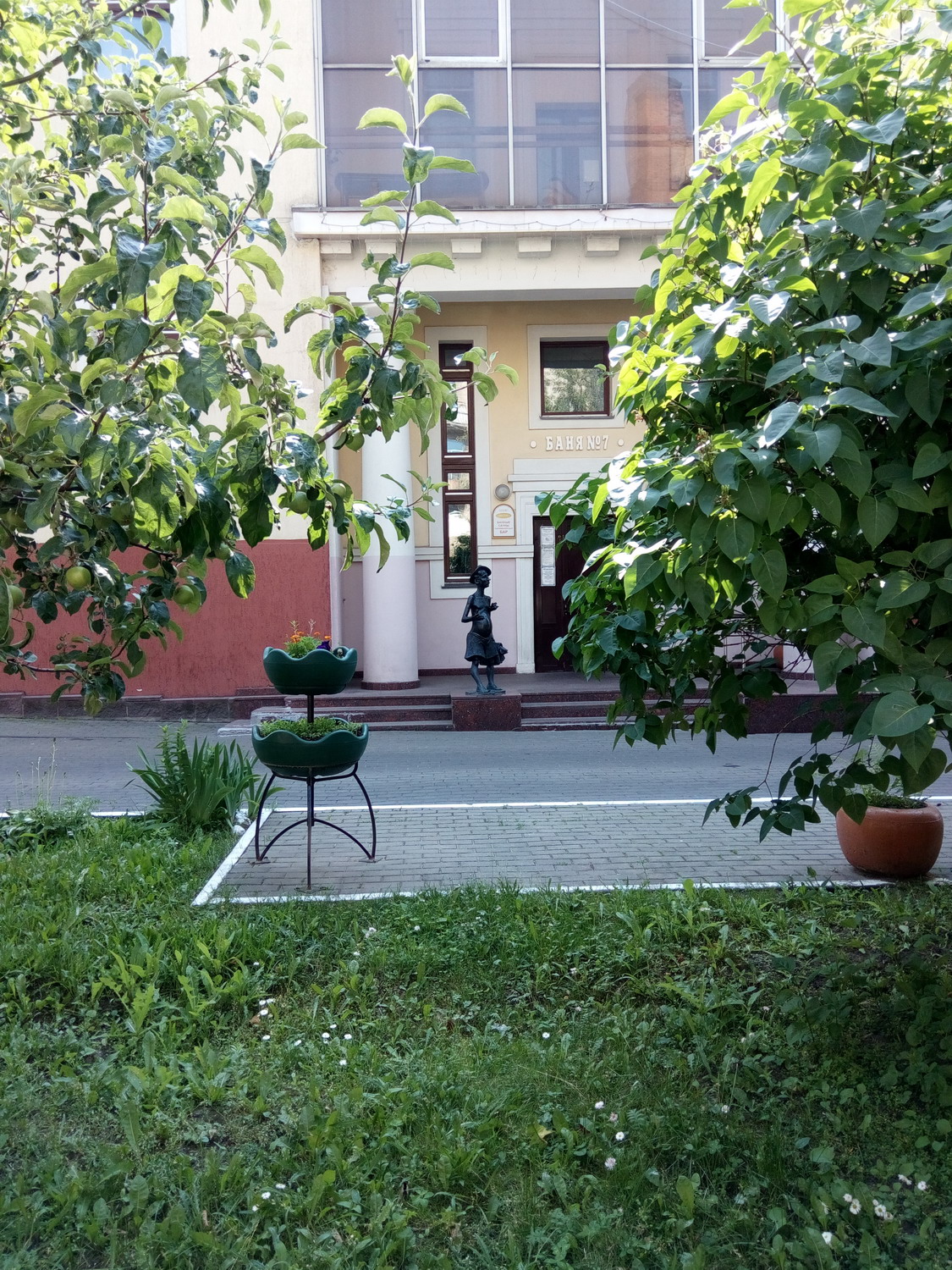 Поселился, пошел поменял рубли на рубли. Успел вовремя - миллионером стал легко и просто. С 1го июля должны были срезать 0000 (четыре нуля) со всех ден.знаков. По дороге увидел: Памятник Банщику