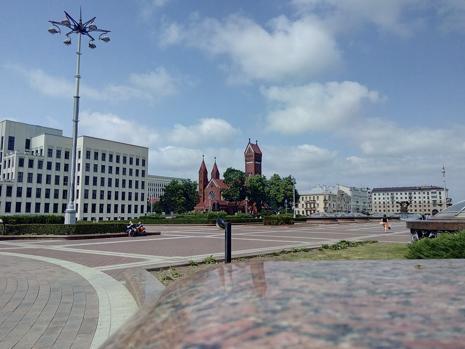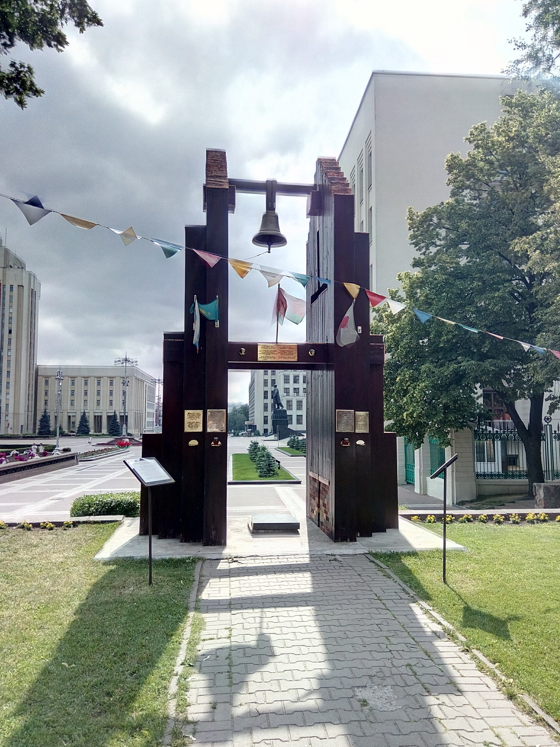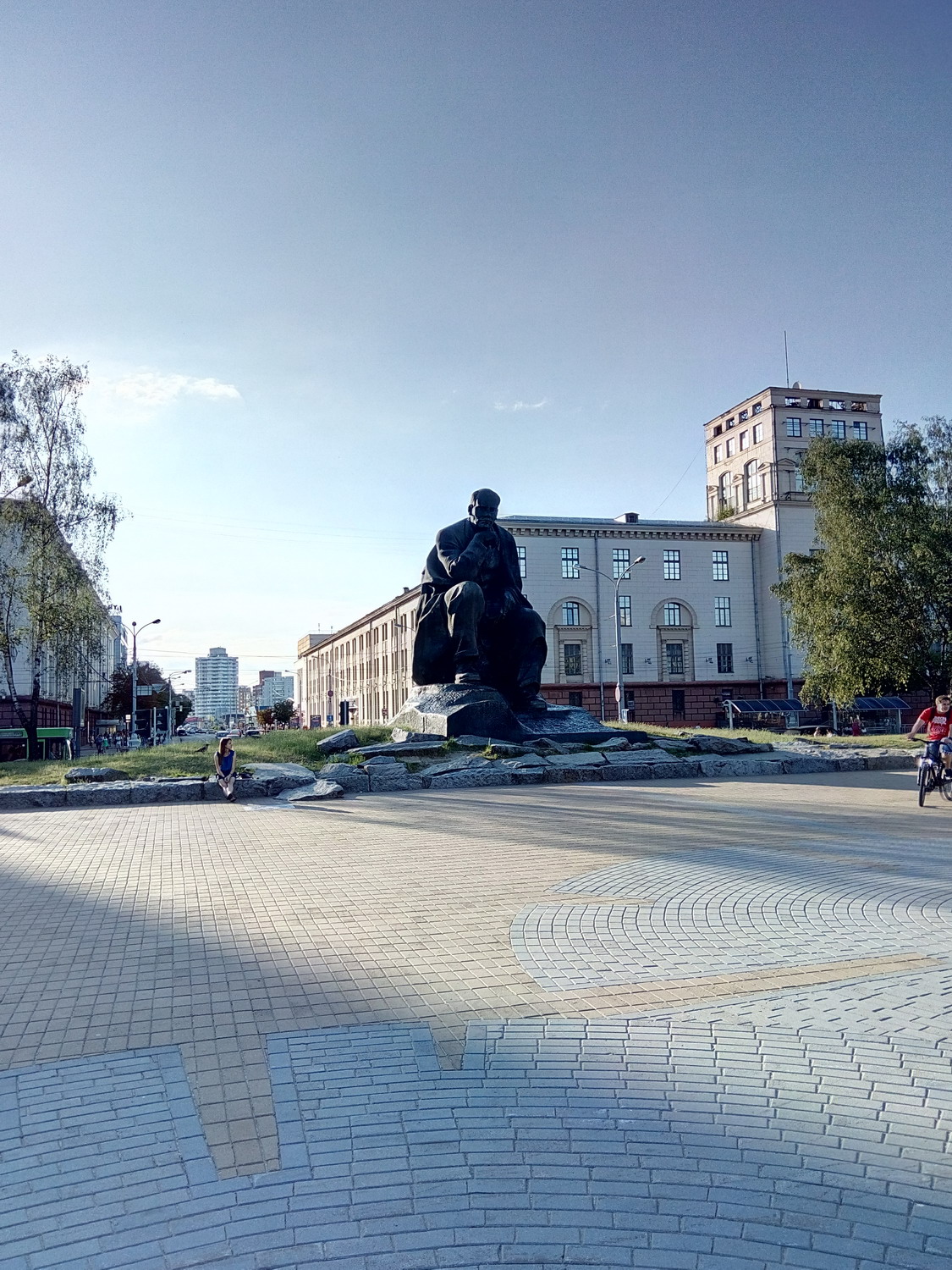 Белору́сский госуда́рственный университе́т (БГУ) Сквер за главным зданием. Туда вход оказывается был только студентов/сотрудников. Я видать сильно отличался и на входе охрана попросила показать документы (1й и последний раз, замечу, за все время где бы то ни было). Я сначала не понял что/как/зачем, начав доставать паспорт, меня остановили вопросом "зачем туда ?" - "сквер, красиво, памятники, приехал в БГУ для проведения экзаменов..." - "Проходите, пожалуйста" Нажмите здесь, чтобы увидеть весь текст