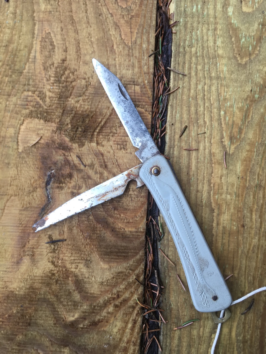 Простой старенький ножик для колбасы.
