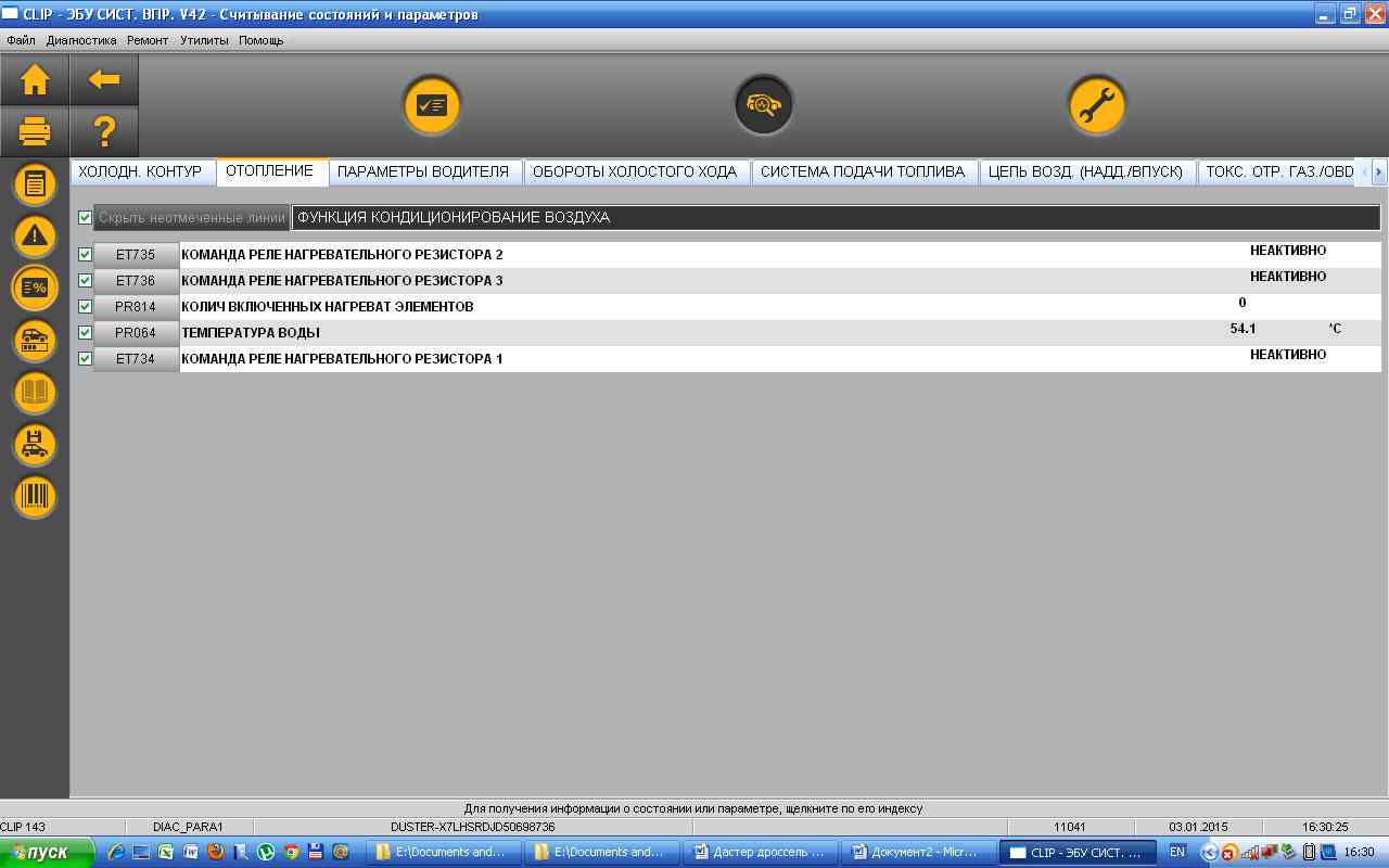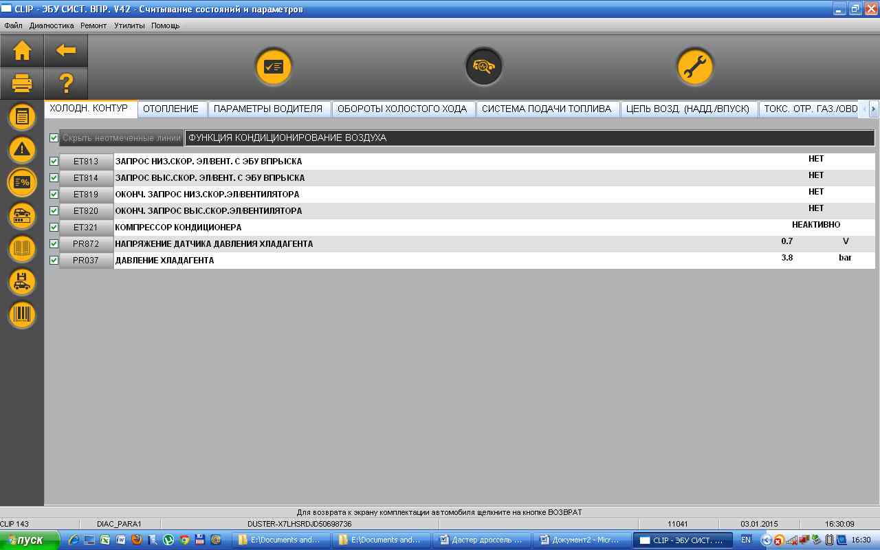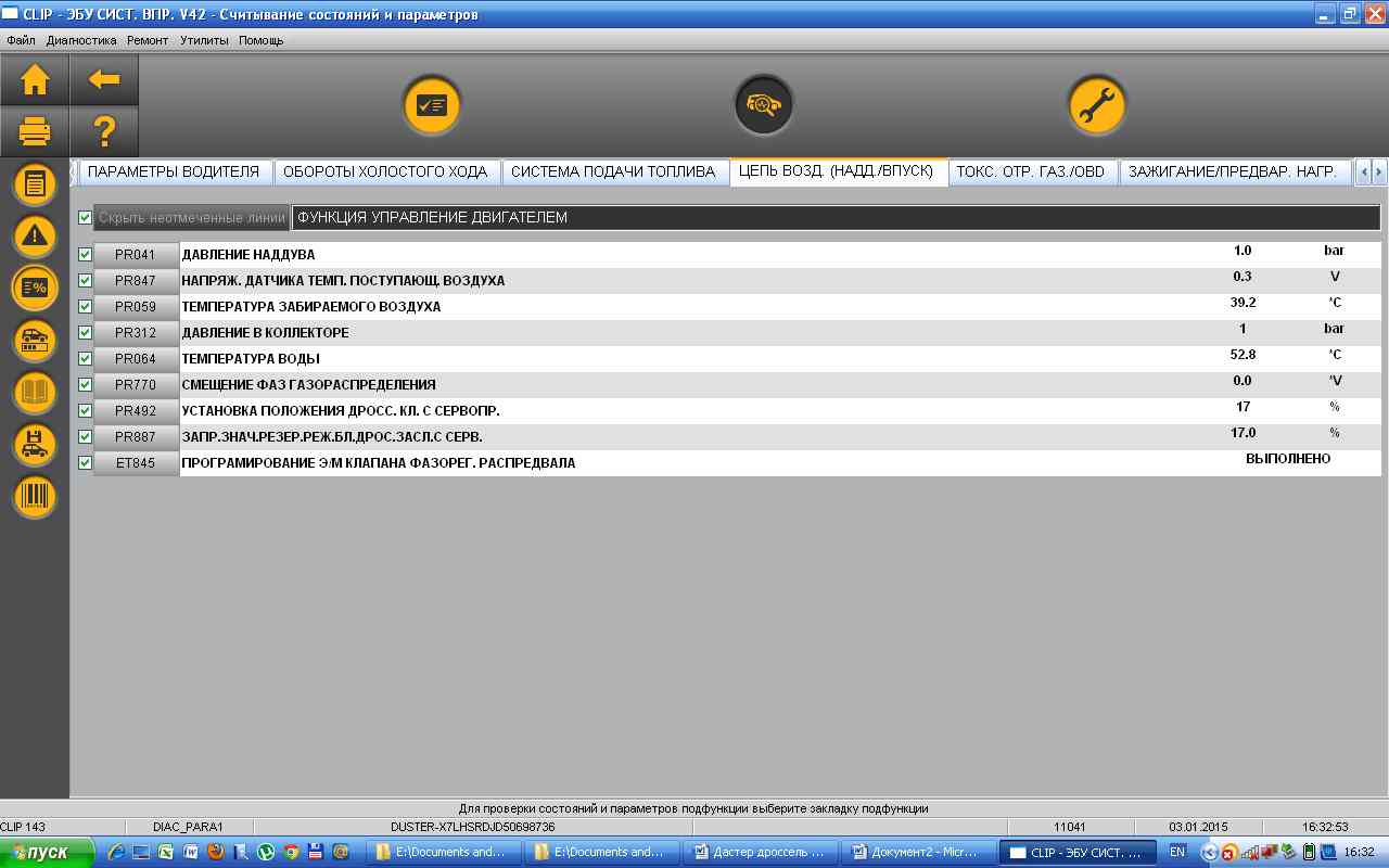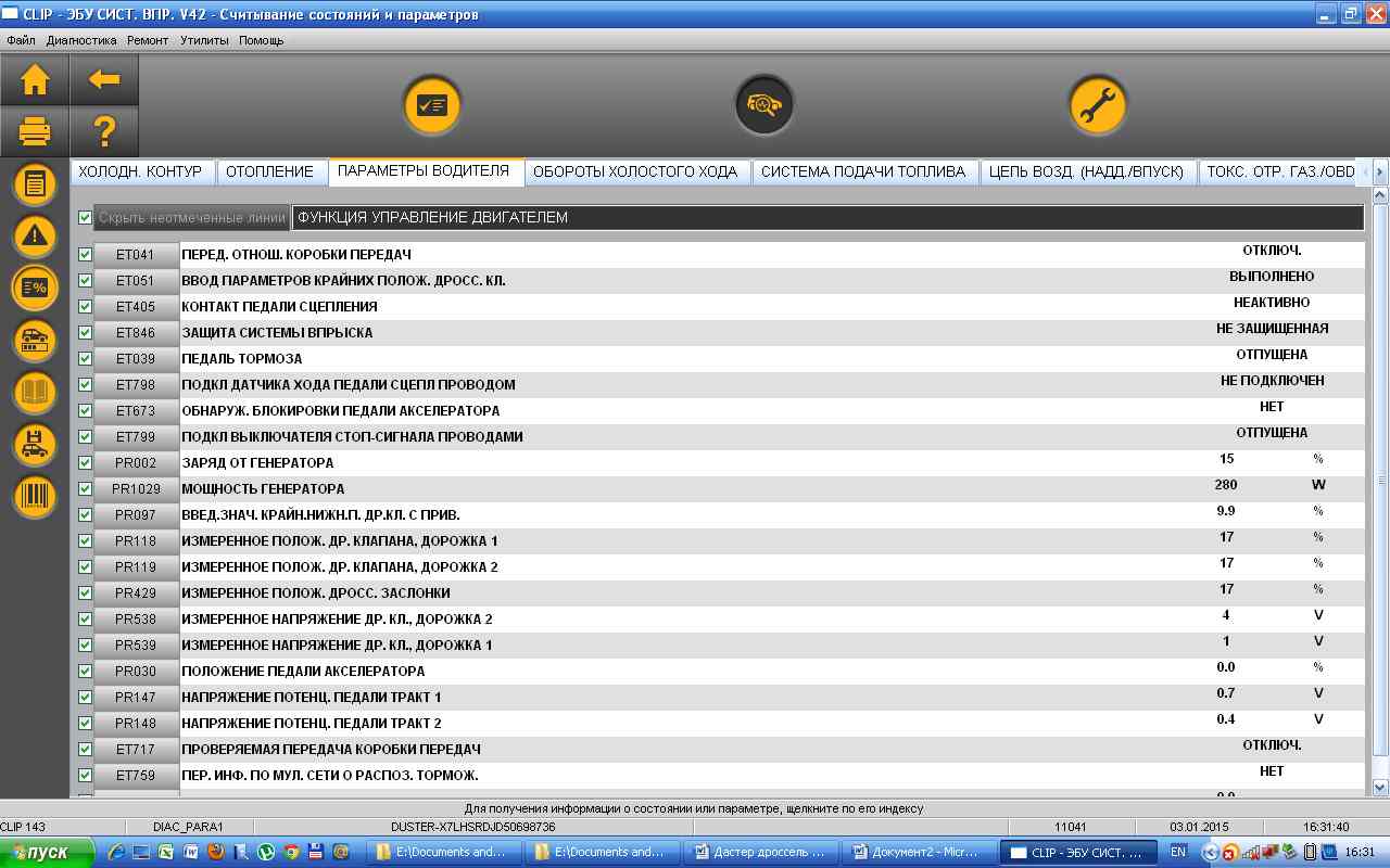 Есть Автоком. По Дастеру все нормально отображает, во вкладке Dacia. Видит все, кроме АКПП. Набор параметров неплохой. В чем то он даже удобнее (просмотр графиков), в Клипе этого нет. По количеству параметров, Клип опережает раза в 3 Автоком. В Автокоме нет возможности поправить конфигурацию.
