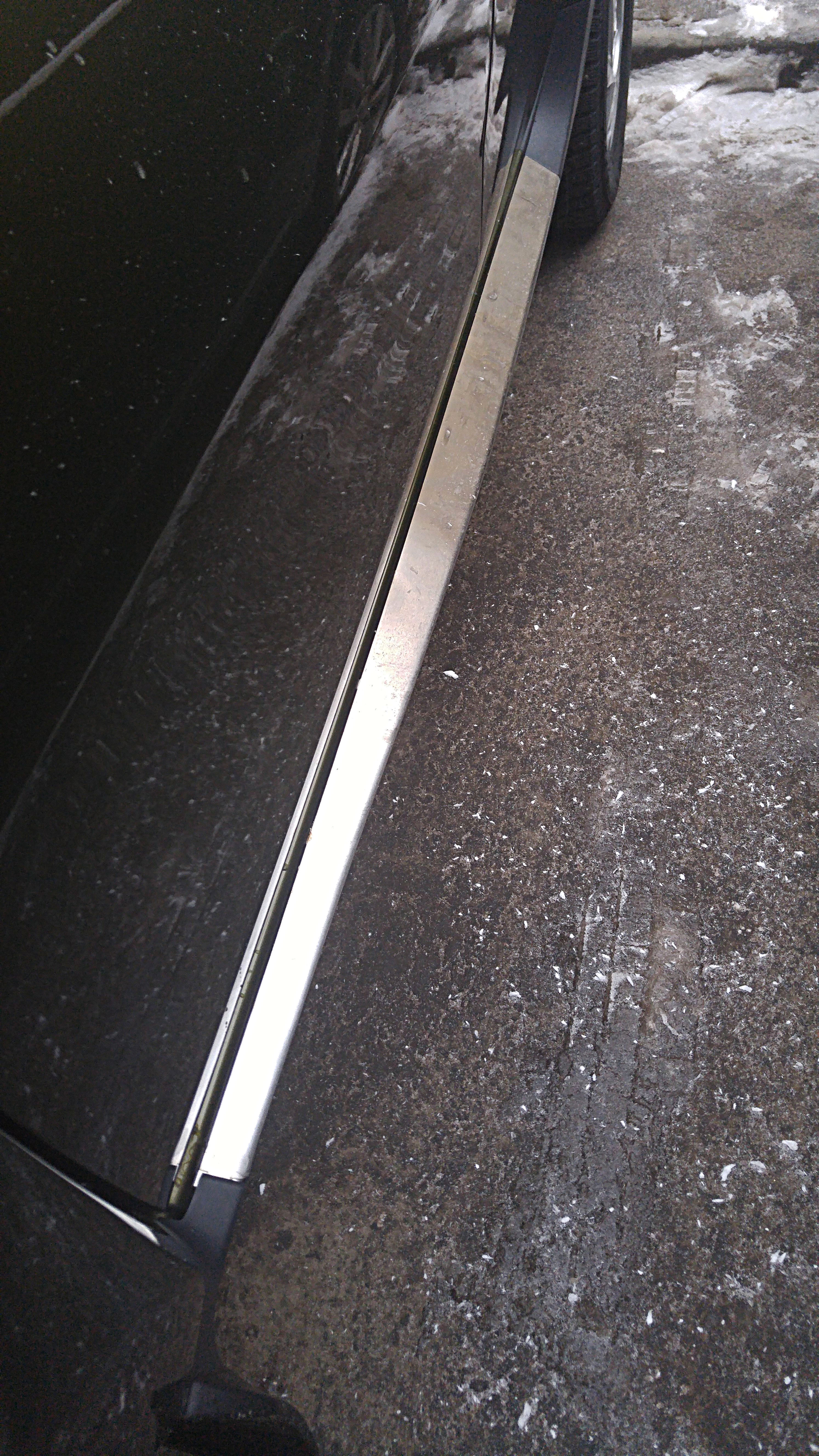 Нахожусь в процессе установки/приклеиваания накладок. Отмыл сначала пороги перед снятием, примерил по месту (вроде все как надо садиться), снял штатные накладки, помыл их еще изнутри. Кстати грязи там под ними хватает, скажу я Вам... Приготовил место у себя в офисе (бывший сарай) для инсталяции...