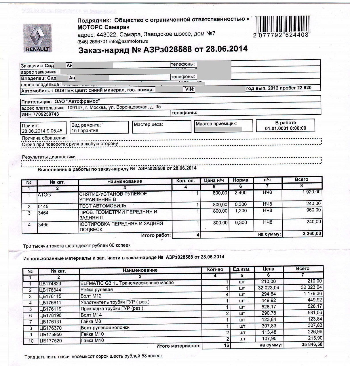 Поставили новую рейку! Руль стал "легче". Скрипов нет. Доволен.