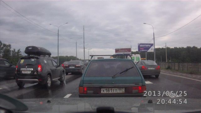 Кого я сегодня утром в 7:42 обсигналил на МКАДе? Номер 643, серебристый, наклейка на заднем стекле.