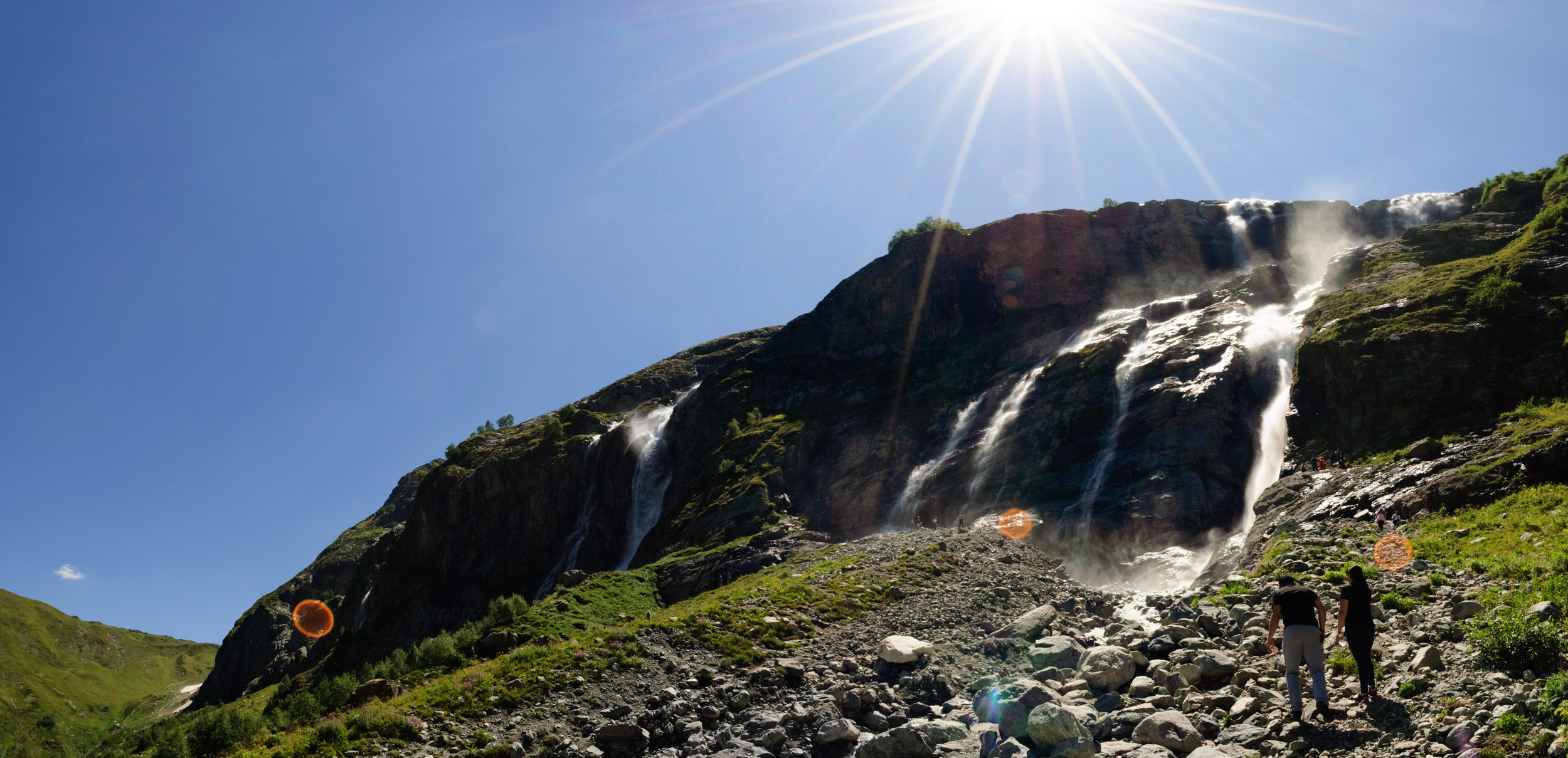 Утром мы пополнили запасы и отправились дальше, свернув на Софийский ледник приехали на поляну Таулу. На поляне находятся множество УАЗов, палаток, где продают всякие вкусные чаи, варенья, готовят шашлык и хычины и многое другое. Проезжая по поляне и уже хотел отправится на Софийские водопады, но встретил знакомого Сергея. Мы с ним пообщались, он мне поведал что у Патриота сломался генератор и он застрял. Генератор скоро починят и они вот-вот должны закинуть его на ледниковые озера, где у него будет протекать 10 дневный пеший поход. Он меня познакомил с Альбертом, который вручил мне ключ от домика, они сдавали за 400р. Я мог в нем остановиться при желании или просто оставить ключ. Рядом стояли УАЗы, на одном из них был брат Альберта. УАЗик до Софийских стоит 3000р. Я спросил про дорогу, в итоге Серега и мой брат сказали возьми УАЗ. Решил им довериться. Попутно послушал интересный рассказ, мне показали где надо проезжать по ручью и как многие пытаются объехать в одном месте с маленькой лужей. Дальше говорят, что кто не знает застрянет в ней 99%, даже подготовленные машины садятся и не могут проехать. На подьем мне было отведено 2:40. Поднимались мы параллельно с группой, они все задыхались и мы переодически их обгоняли и друг другу мешали. С одной стороны я идущей с ребенком на руках, с другой стороны "горетуристы", задыхающиеся и ноющие как тяжело им подниматься. Перед большим камнем был сложный участок. Тут туристы делились на 2 группы, кто переходил реку на другую сторону и те кто карабкались по мокрому камню. Я оставил ребенка с супругой и поднялся последние метры в одиночку. Группа туристов очень замедляли мое движение. На Софийское седло я не пошел, так как был ограничен по времени. Сделал несколько кадров водопадов, но солнце было высоким и шедевров не получилось. Сердце бешено билось, мне предстоял еще спуск с ребенком на руках. Зато сейчас по Крыму я бегаю как сайгак=) Подъем происходит с поляны, она наполнена всякими частными машинами стоящими с палатками. Среди них я видел ТЛК, Х-трейлы, Дастеры и Тигуаны. Поляна расположена примерно на высоте в 2000м, сами Софийские не знаю не посмотрел. Потраченных денег за УАЗик я с одной стороны пожалел. Хотелось все-таки проехаться на своей машине. С другой стороны, теперь я знаю дорогу и получил интересный рассказ. К тому же узнал о Белом водопаде на одноименной реке. Со слов УАЗовода к нему сложно проехать из-за бродов. Дастер проехал, хоть и было пару бродов, которые вызывали у меня опасения. Разведку я не проводил, как оказалось если знать маршрут можно проехать и на 2108. 2108 тоже был около водопада. Сделаем поправку, что 2108 схитрил и ехал за УАЗом, смотря их траекторию. Я же пер в лоб, самостоятельно, не зная верной траектории. Кто скажет нужно было ножками пройти? Так попробуй постоять в ледниковой талой воде на камнях, я попробовал, ноги у меня сводило моментом. Находился я как герой один среди толпы УАЗиков. Это вроде гора София, но я точно не уверен. Ибо я спросил название у местных и не уверен что они меня правильно поняли. Сам водопад Белый. Около водопада вода слегка кислая, в 20 метрах ниже с приятным сладким послевкусием. Пытаюсь максимально емко вести рассказ и без большого количества фотографий. Ибо про Архыз еще много хочется рассказать. Продолжение следует. Последний раз редактировалось Подводник; 27.08