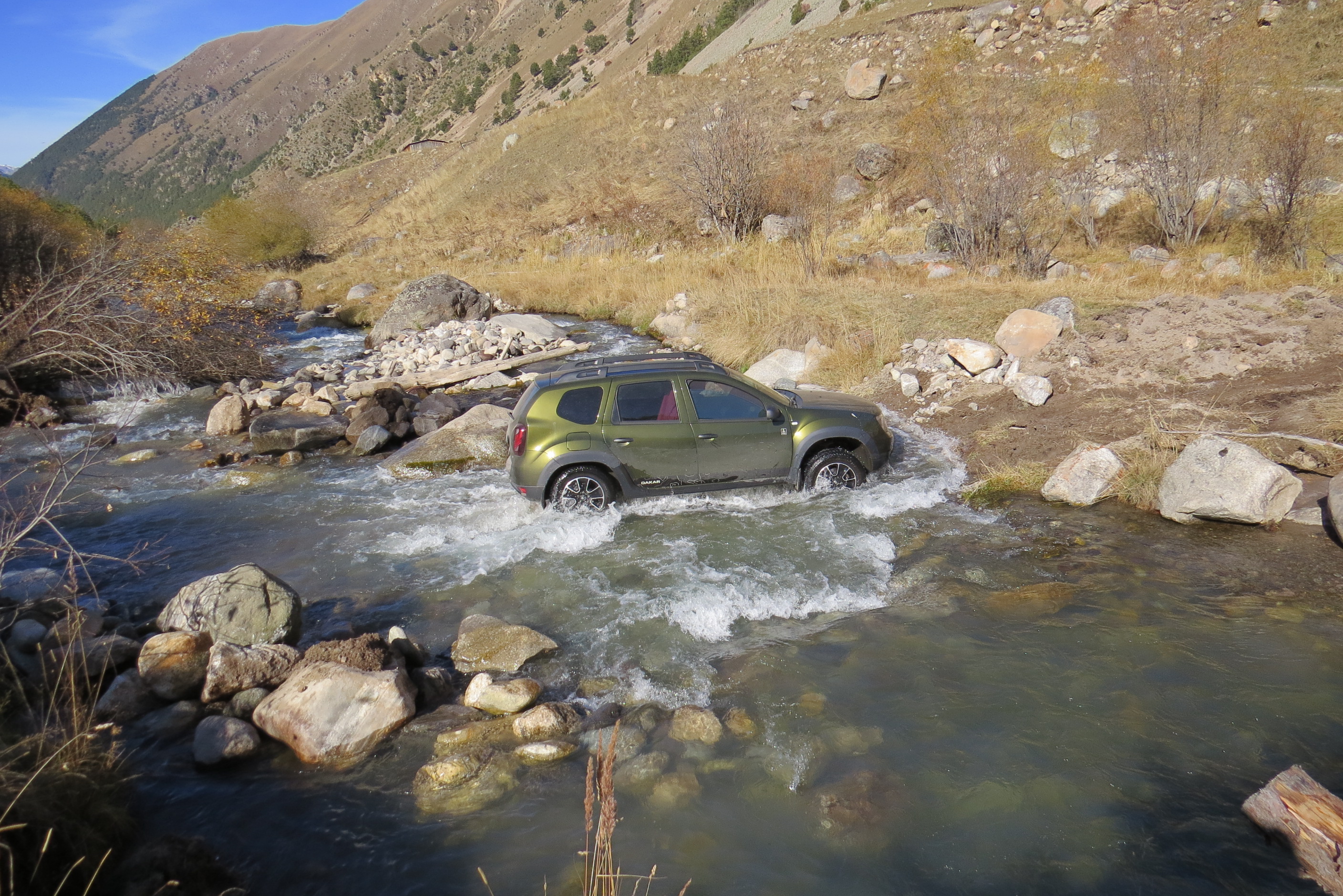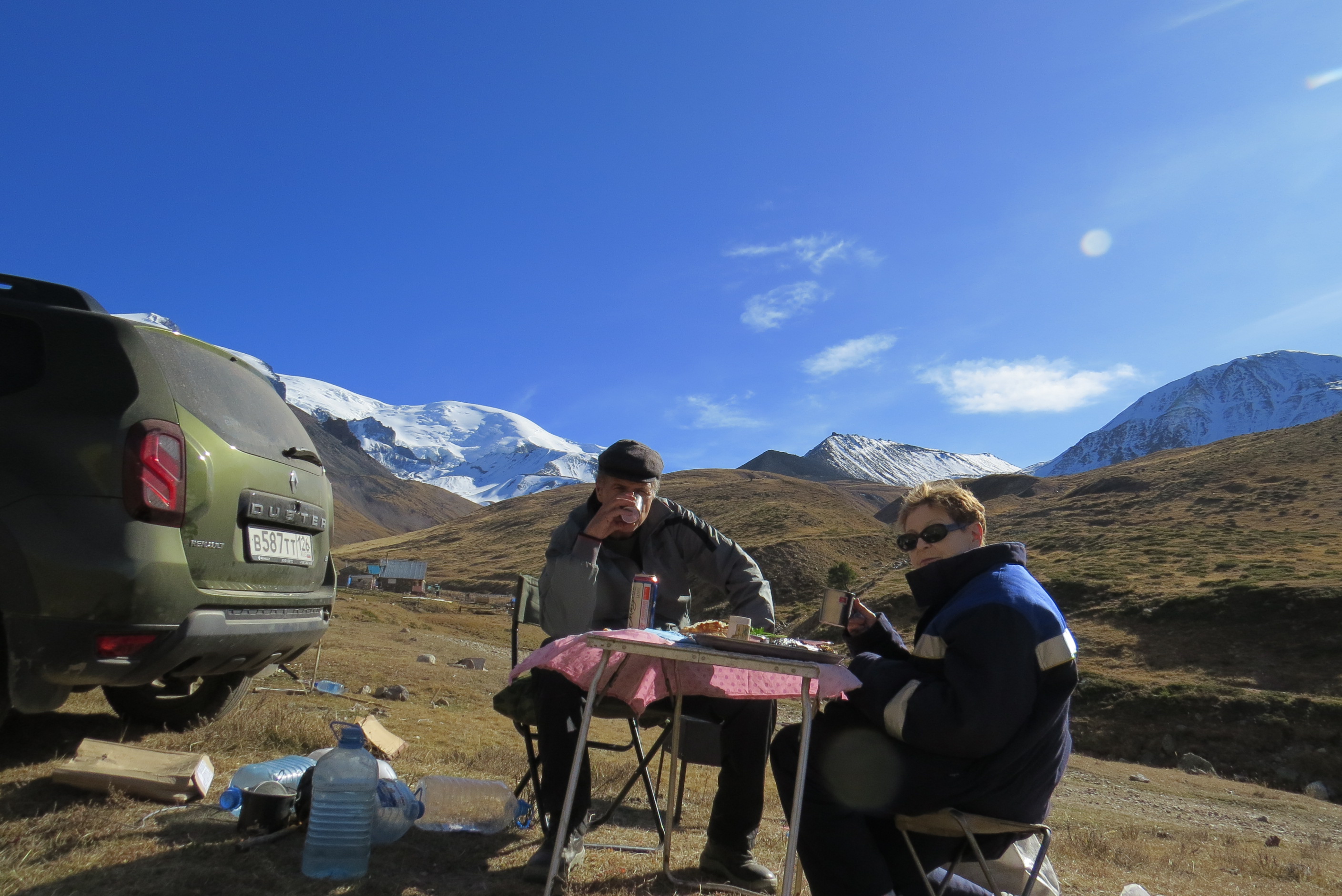 Всем привет.Вчера устроили не большой джиппинг на Дастере. Последние теплые деньки,решили смотаться На Карачаевское Джилы Суу,есть такое урочище в 7-и км с запада от Эльбруса,находится на высоте 2600 м. Раньше я туда ездил на Шниве,а в 17 году даже проехали на Калине кросс. Поэтому решил,что для Дастера это будет легкая поездка,но оказалось все не так радужно,дорога местами очень тяжелая,торчащие камни(цеплял днищем,но вроде ничего не повредил надо будет заскочить на яму и осмотреть) были сели,часть из 11-и мостов посмывало,дорогу местами размыло. Сейчас мосты кое как восстановили,дорогу камнями подравняли,последний мост оказался разрушен,только в брод. Сам по себе брод легкий,а вот съезд и выезд довольно тяжелые,застревал,т.к.суглинок,сыро,а колеса стоковые Контики,пробуксовка,но ничего,Дастер не подвел,1-я короткая и режим 4лок в трансмиссии,рулят,а также клиренс,геометрическая проходимость,без этого арсенала туда соваться нельзя. Вот поэтому я и взял Дастера,а не Крету или Каптюра. Когда прибыли на место,никого не было,довольно тепло,около 15 гр.,искупались в теплых нарзанах,конечно, приготовили шашлык. Вообщем,приятно провели день,но очень мало были на Джилы Суу,всего 3.5 часа,во первых сама дорога,да ещё"потеряли" последний мост,около получаса разбирались где он(рассчитывали затратить на дорогу 7.5 ч,а получилось около 10),да и вернутся надо было домой к 7 часам. И немного фоток,3-я фото это Эльбрус. Всем удачи,до новых поездок,в этом году уже,наверное,все.
