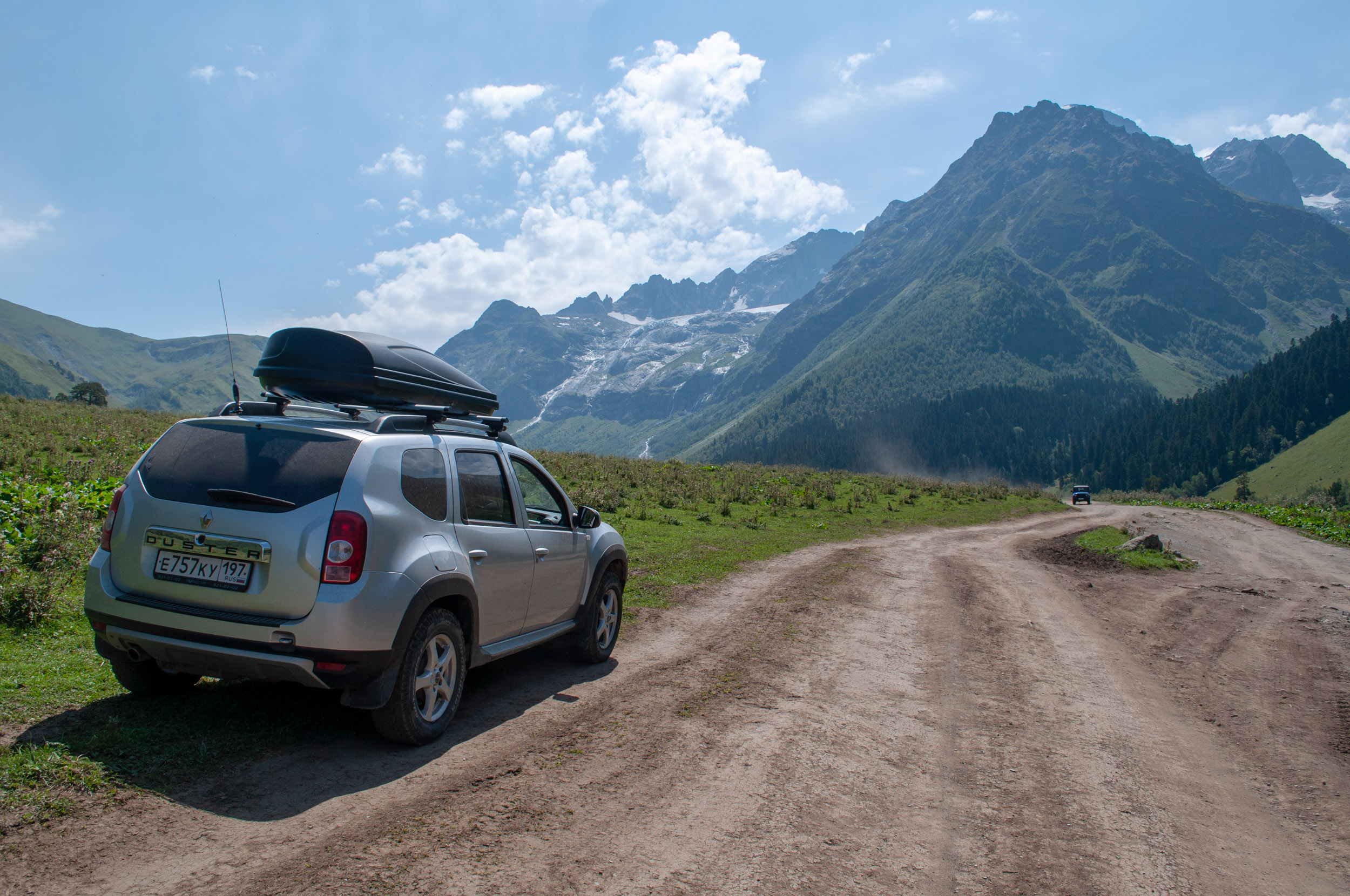 Всем привет.Вчера устроили не большой джиппинг на Дастере. Последние теплые деньки,решили смотаться На Карачаевское Джилы Суу,есть такое урочище в 7-и км с запада от Эльбруса,находится на высоте 2600 м. Раньше я туда ездил на Шниве,а в 17 году даже проехали на Калине кросс. Поэтому решил,что для Дастера это будет легкая поездка,но оказалось все не так радужно,дорога местами очень тяжелая,торчащие камни(цеплял днищем,но вроде ничего не повредил надо будет заскочить на яму и осмотреть) были сели,часть из 11-и мостов посмывало,дорогу местами размыло. Сейчас мосты кое как восстановили,дорогу камнями подравняли,последний мост оказался разрушен,только в брод. Сам по себе брод легкий,а вот съезд и выезд довольно тяжелые,застревал,т.к.суглинок,сыро,а колеса стоковые Контики,пробуксовка,но ничего,Дастер не подвел,1-я короткая и режим 4лок в трансмиссии,рулят,а также клиренс,геометрическая проходимость,без этого арсенала туда соваться нельзя. Вот поэтому я и взял Дастера,а не Крету или Каптюра. Когда прибыли на место,никого не было,довольно тепло,около 15 гр.,искупались в теплых нарзанах,конечно, приготовили шашлык. Вообщем,приятно провели день,но очень мало были на Джилы Суу,всего 3.5 часа,во первых сама дорога,да ещё"потеряли" последний мост,около получаса разбирались где он(рассчитывали затратить на дорогу 7.5 ч,а получилось около 10),да и вернутся надо было домой к 7 часам. И немного фоток,3-я фото это Эльбрус. Всем удачи,до новых поездок,в этом году уже,наверное,все.
