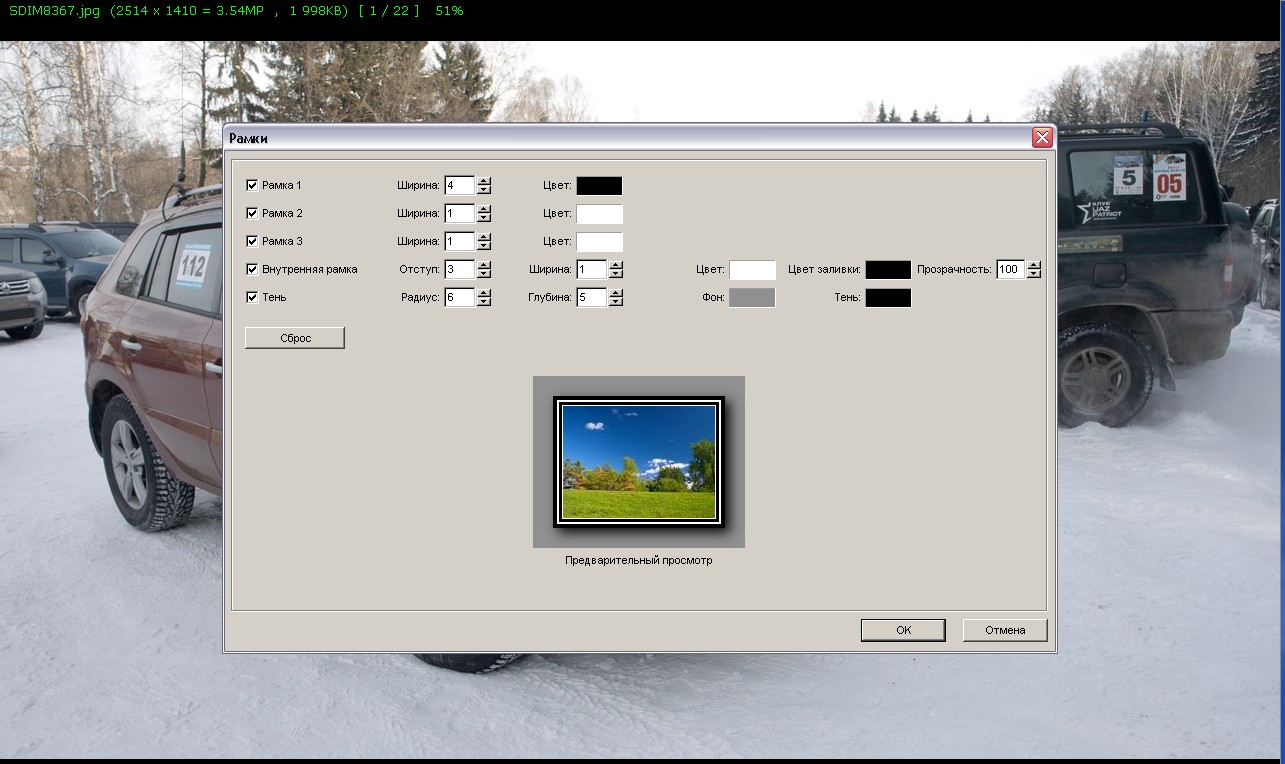 Есть беплатная программа-просмотрщик с элементами обработки: FastStone Image Viewer 4.9 Там рамки делаются элементарно. Как? Напишу в теме "всё о фото".
