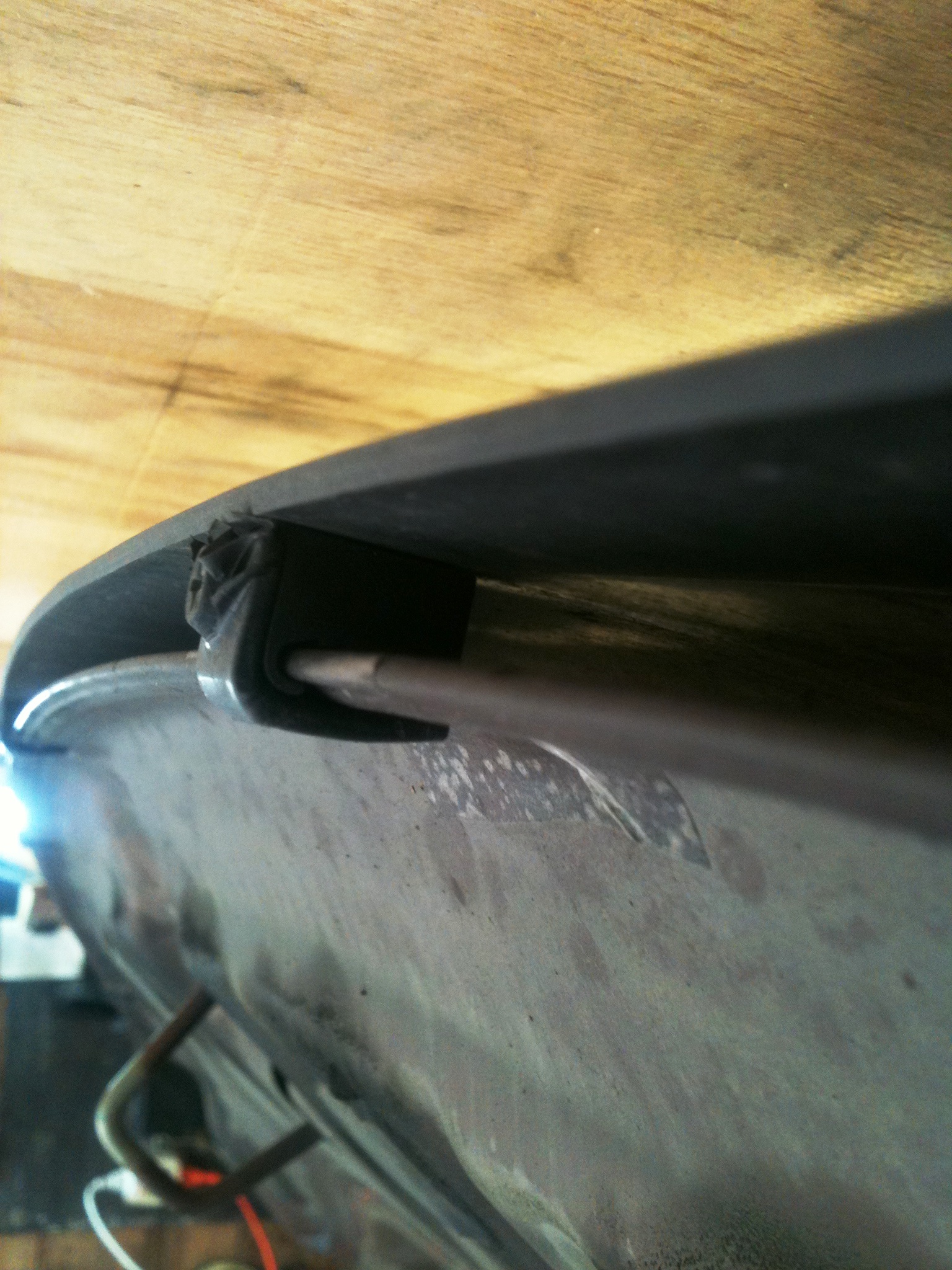 У меня такой же установлен, крепится 5-ю зажимами по краю капота, чуть дальше клеятся резиновые упоры , если их нет или потерялись подходят колпачки от прокачного штуцера ВАЗ или что то подобное.