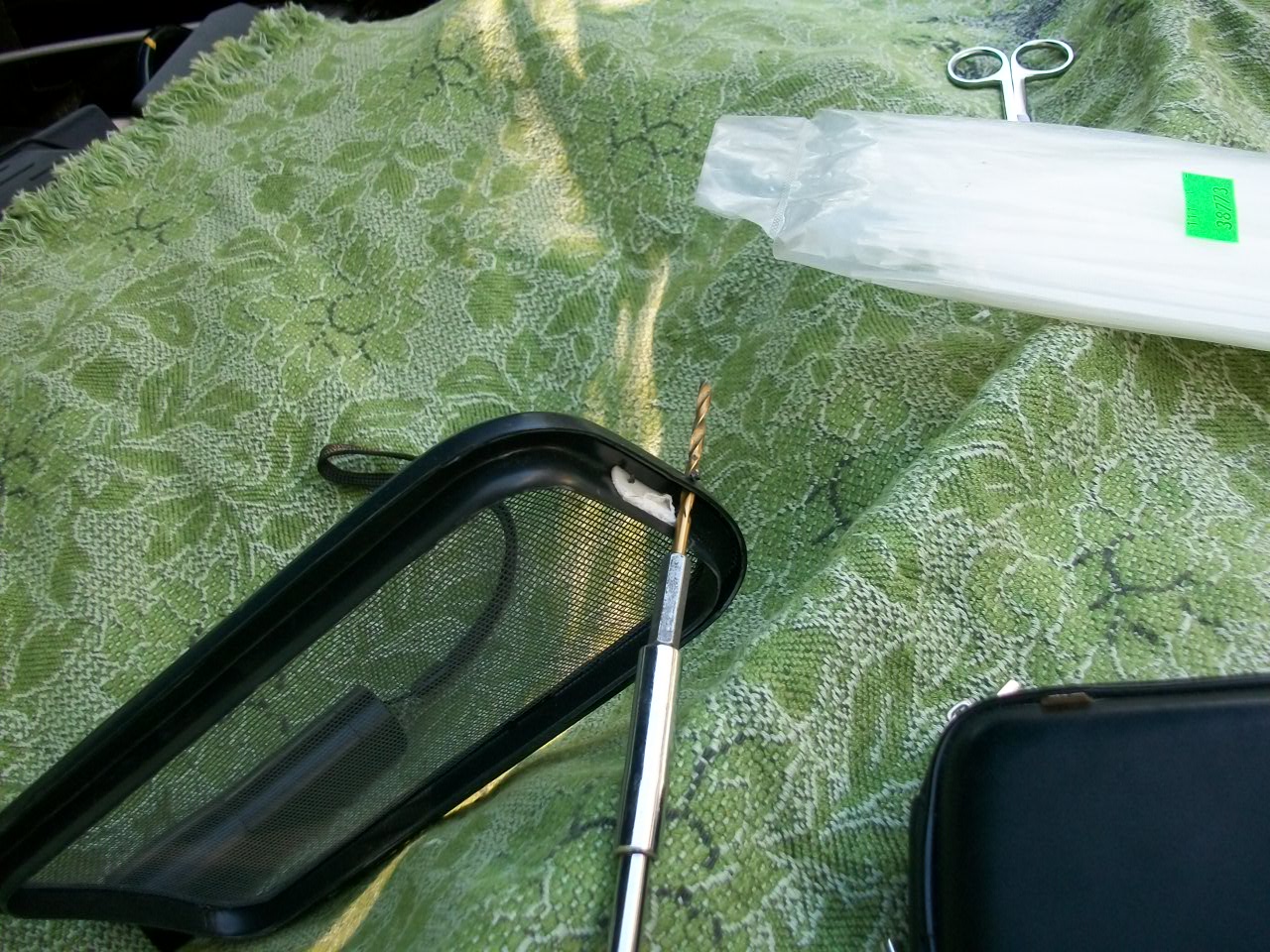 Прикрепил хомутик, чтобы можно было вытащить сетку и почистить. Кончик хомутика на липучке, чтобы не "дрынчал".