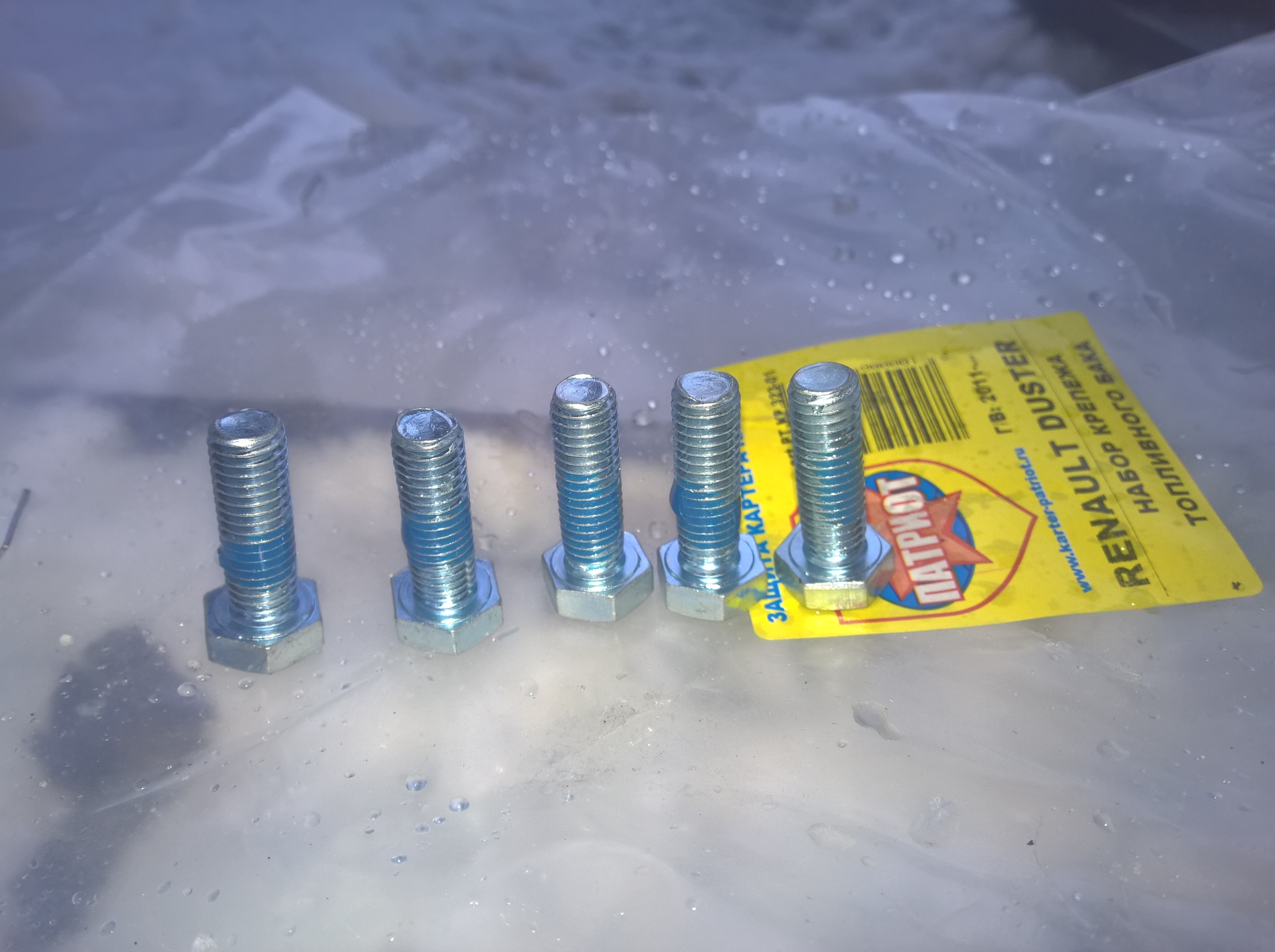 Пользуясь услугами нашил одноклубников и в частности Андрею (Zap) заказываю в Соответствующей теме защиту бака и редуктора, а также защиту кислородного датчика моего Дизельного Дастера ))Сам процесс был интересен своими казусами. Оплата с карты на карту шла 2 суток.. ох сколько нервов было потрепано за это время. Это и звонки в банк, и общение с одноклубником Андреем (ZAP), но оплата прошла. И вот я жду свои защиты. Кстати так получилось, что крепеж защиты кислородного датчика у Андрея не оказалось, и он любезно связался с компанией производителем Патриот чтобы они выслали мне те самые недостающие крепления защиты кислородного датчика. Пока ждал посылку на всяких случай перечитал подробный отчет об установке защит Skipper-Влад И вот, вчера проверяя статус отправки посылки в транспортной компании, обнаруживаю что посылка прибыла. Сегодня утром отправляемся за долгожданной посылкой и уже в 10.00 получаем тщательно упакованный «желанный» сверток. А уже в 10.30 позвонила оператор другой транспортной компании и сообщила, что я могу получить посылку. Едем туда и получаем конвертик от компании ПАТРИОТ. Ну а дальше по старой доброй традиции, выбрав для установки самый подходящий день с самыми «замечательными» для этого погодными условиями, а именно мокрый снег, лужи и ноль (0) по цельсию, еду искать хоть какую ни будь эстакаду. Объездив пол города в одном гаражном кооперативе нахожу интересующий нас снаряд. Плачу 200 р. За аренду эстакады на 2 часа. Ну и тут то все закрутилось завертелось. Распаковываем посылочки Устанавливаем кронштейны защиты редуктора и закладную деталь. Устанавливаем защиту редуктора, не закручивая до упора болты. Устанавливаем кронштейны защиты бака, также не закручивая до упора. Устанавливаем защиту, соединяем ее с защитой редуктора и все болты тщательно протягиваем. Идем в переднюю часть автомобиля. Устанавливаем все необходимые закладные для установки защиты датчика кислорода. И устанавливаем защиту, протягивая весь крепеж. Получаем замечательный вид. Кстати все болты смазывал "разборным" фиксатором резьбы. Съезжаем с эстакады. Получаем одобрение, что я управился за 1.5 часа. И радуемся став счастливым обладателем защит от компании ПАТРИОТ.