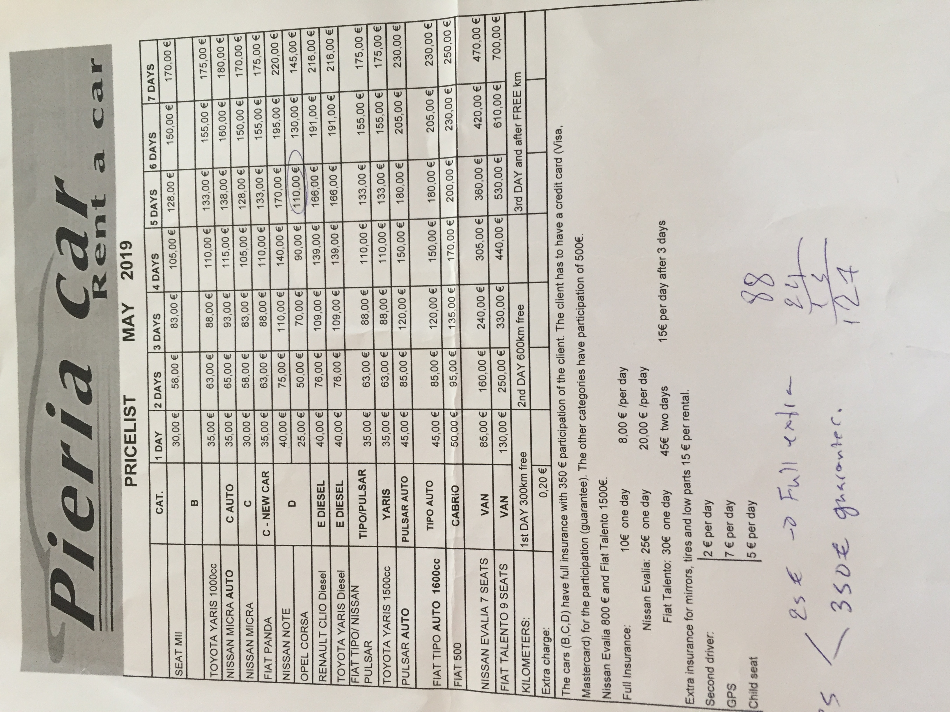Цена аренды составила: сама аренда 175 € + полная страховка 65 € = 240 €
