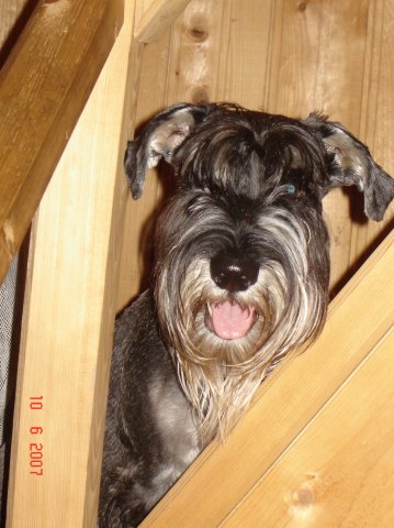 Это любимица всей нашей семьи миттельшнауцер Вериса. К каждому из нас у нее свой особенный подход. Кроме этого обожает поездки на машине (особенно на дачу) и очень по человечески обижается если все уезжают а она остается дома одна.