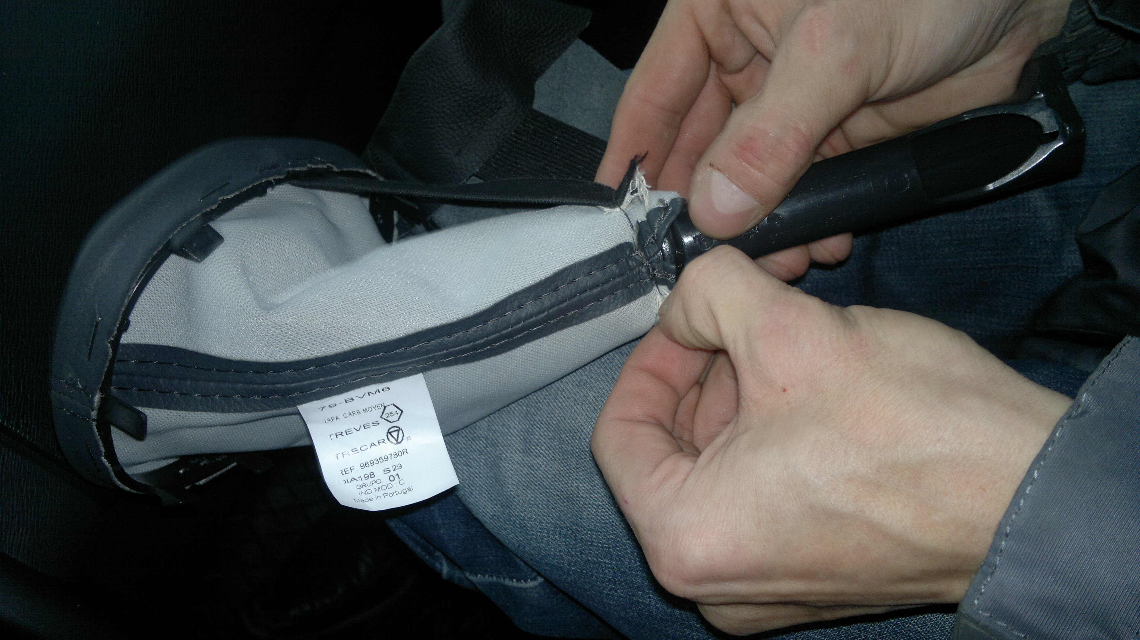В комплекте с накладкой приложена "юбка", нитка для шнурования, игла и инструкция... Снимаем ручку КПП. Снимается с усилием слегка расшатывая в стороны. С ручкой направляемся домой. Дома предварительно замачиваем накладку в теплой воде. Снимаем хромированную накладку аккуратно поддев ее с краю Приступаем к шнурованию... После просушки торцов бытовым феном проклеиваем и возвращаем на место серебристую накладку Рукоять готова, приступаем к замене манжеты. Снимаем пружину. Аккуратно надавив на бока снимаем манжету Выворачиваем и срезаем пластиковую стяжку Одеваем манжету из комплекта и стягиваем в монтажном месте пластиковой стяжкой из комплекта. Обрезаем лишний конец стяжки... Снимаем пластиковую рамку со штатной манжеты разогнув металлические скобки Манжету из комплекта натягиваем на пластиковую рамку и крепим металлическими скобками собираем все в обратной последовательности (не забываем вложить пружинку) Если вдруг найдутся желающие самостоятельно изготовить накладку во вложениях эскиз 1:1