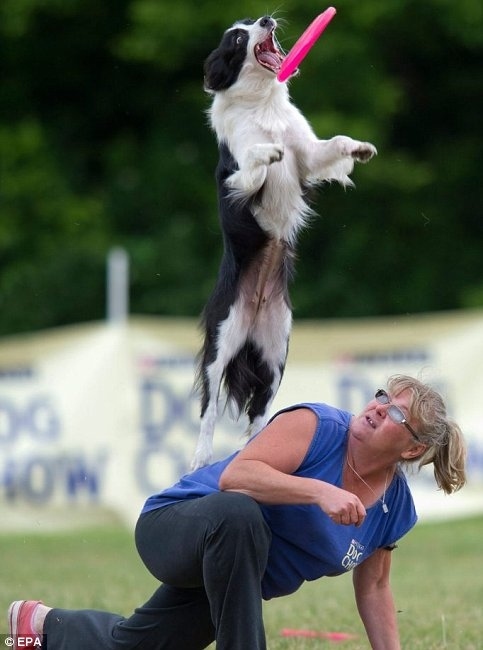 Демократичный спорт для прыгучих собак. Тренироваться можно в любое время года на любой подходящей лужайке. журнал "Если у вас есть собака", 3 номер ![]() Соревнования проводятся трех видов. - Броски на точность: за минуту собака должна поймать диск в отмеченных зонах. - Броски на дальность: у команды есть 3 попытки, засчитывается самый дальний и удачный бросок. - Фризби-фристайл: в течение 2 минут под музыку спортсмен и собака должны показать серию трюков в свободном стиле, завершающихся ловлей дисков. Ну и мои участники и призеры