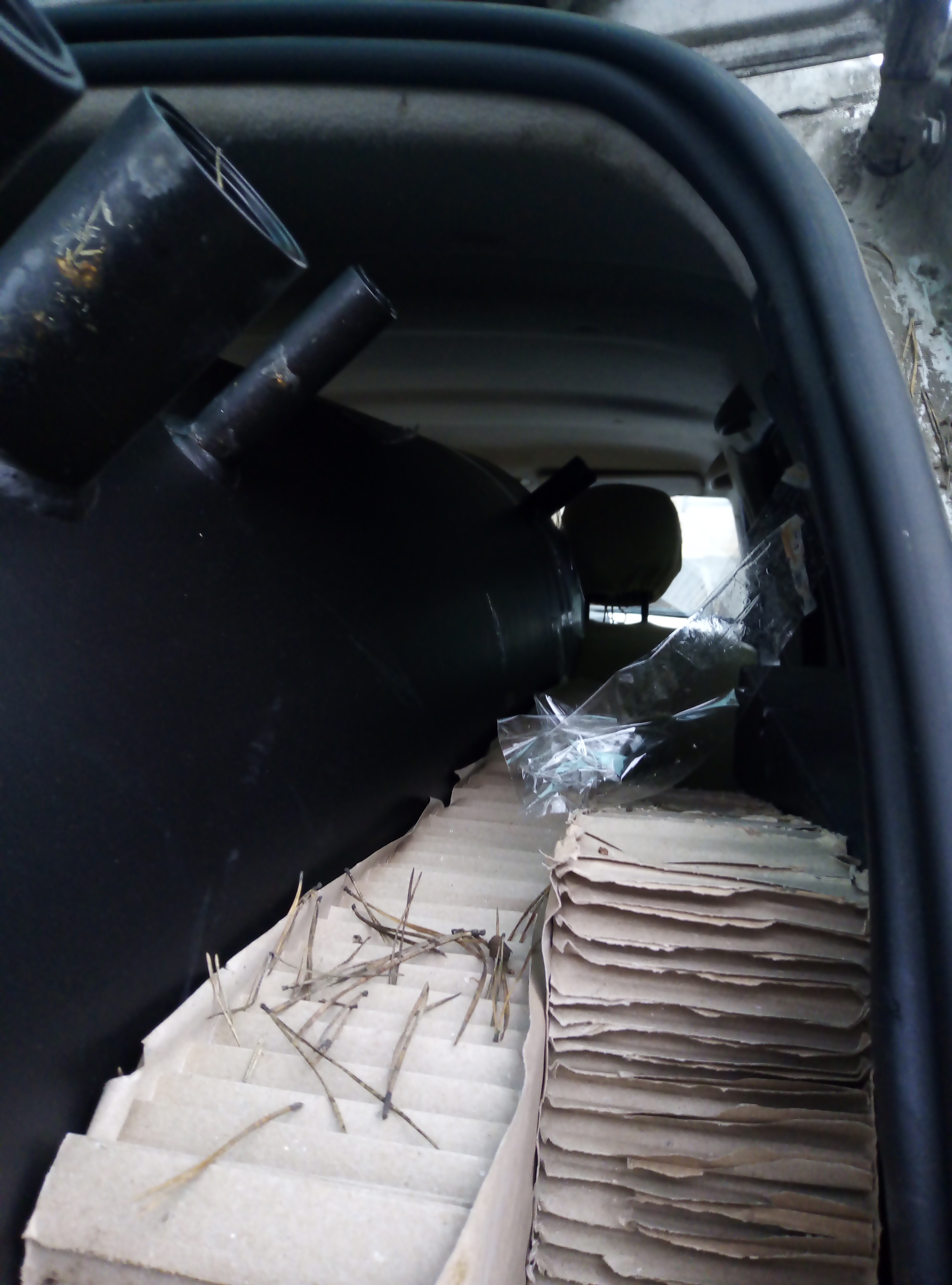 К вопросу, что можно перевезти на Дастере.. Это буферная емкость для отопления на 500 литров. Габариты 2 метра на 0.6. Плюс упаковка, хотя по высоте пришлось удалить. Заднюю дверь просто привязал. за доставку от Мытищ до Пушкино зарядили 2500. Экономия, однако..