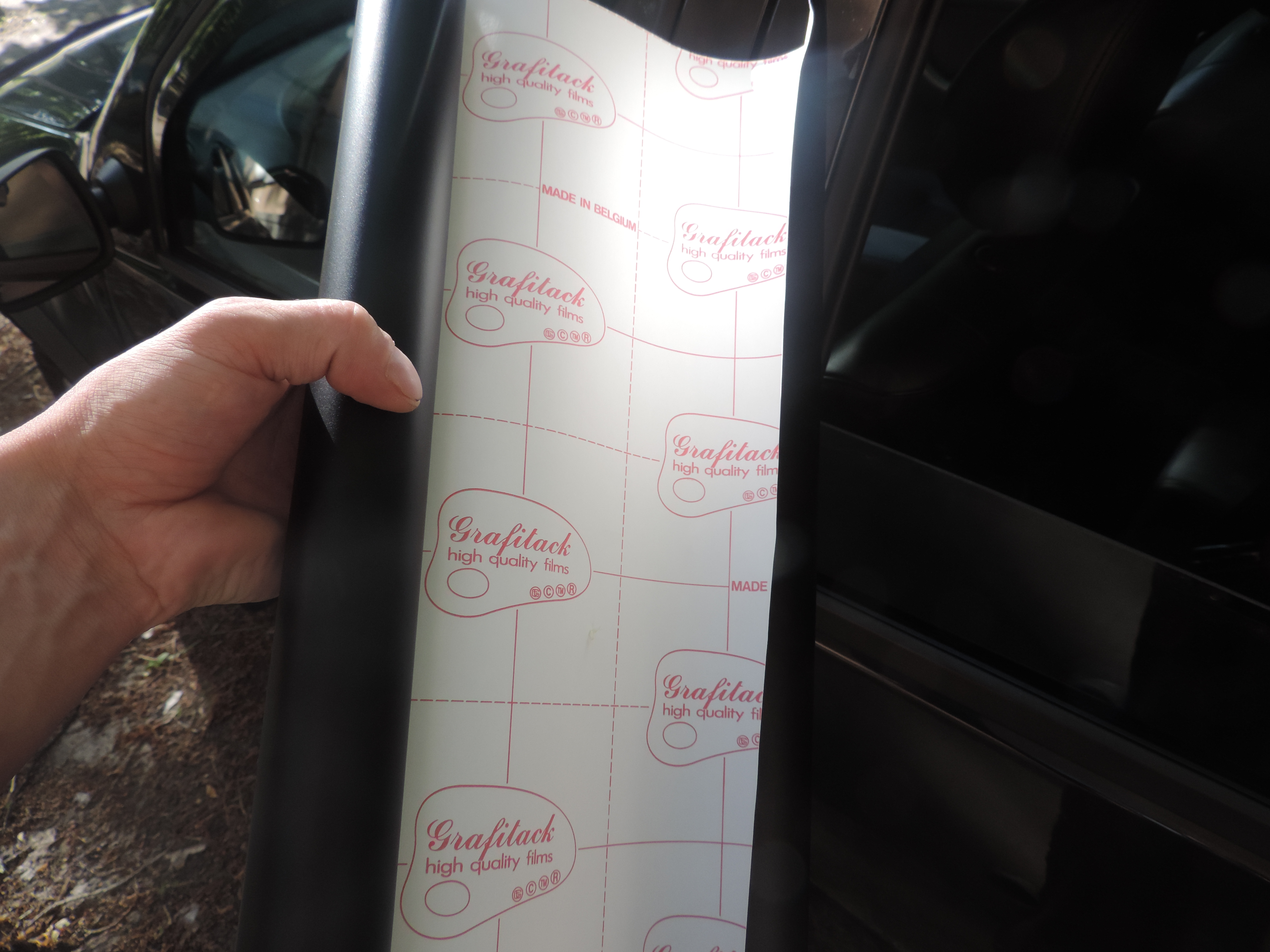 Решил оклеить стойки дверей черной матовой пленкой, как у правдошных автомобилей... Спасибо Саше, соответствующую пленку привез... Вроде все просто, но с первого раза не получилось... Рекомендую использовать распылитель с мыльной водой и не забывать почаще спрыскивать оклеиваемую поверхность и пленку (кто то и на сухую делает хорошо)... Пленка