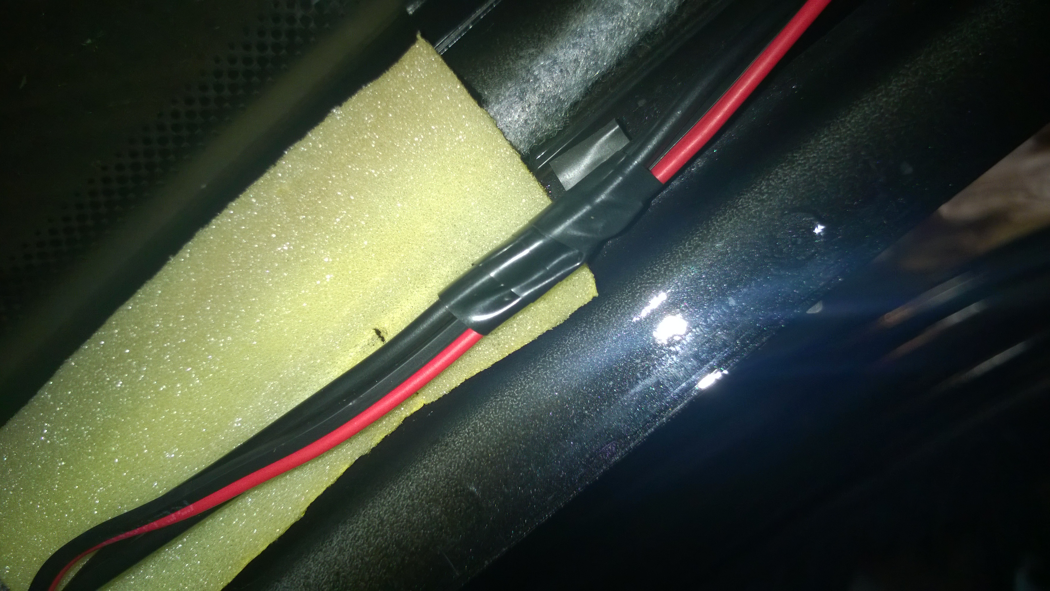 Протаскиваем провод в сторону центральной консоли и подключаем припаиваем провода к плате и соединяем провода к питанию прикуривателя
