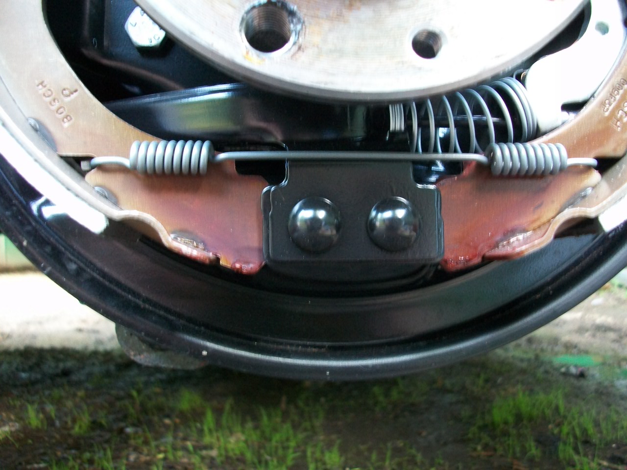 На задних барабанах стоит механизм саморазводки колодок в пространстве барабанов.