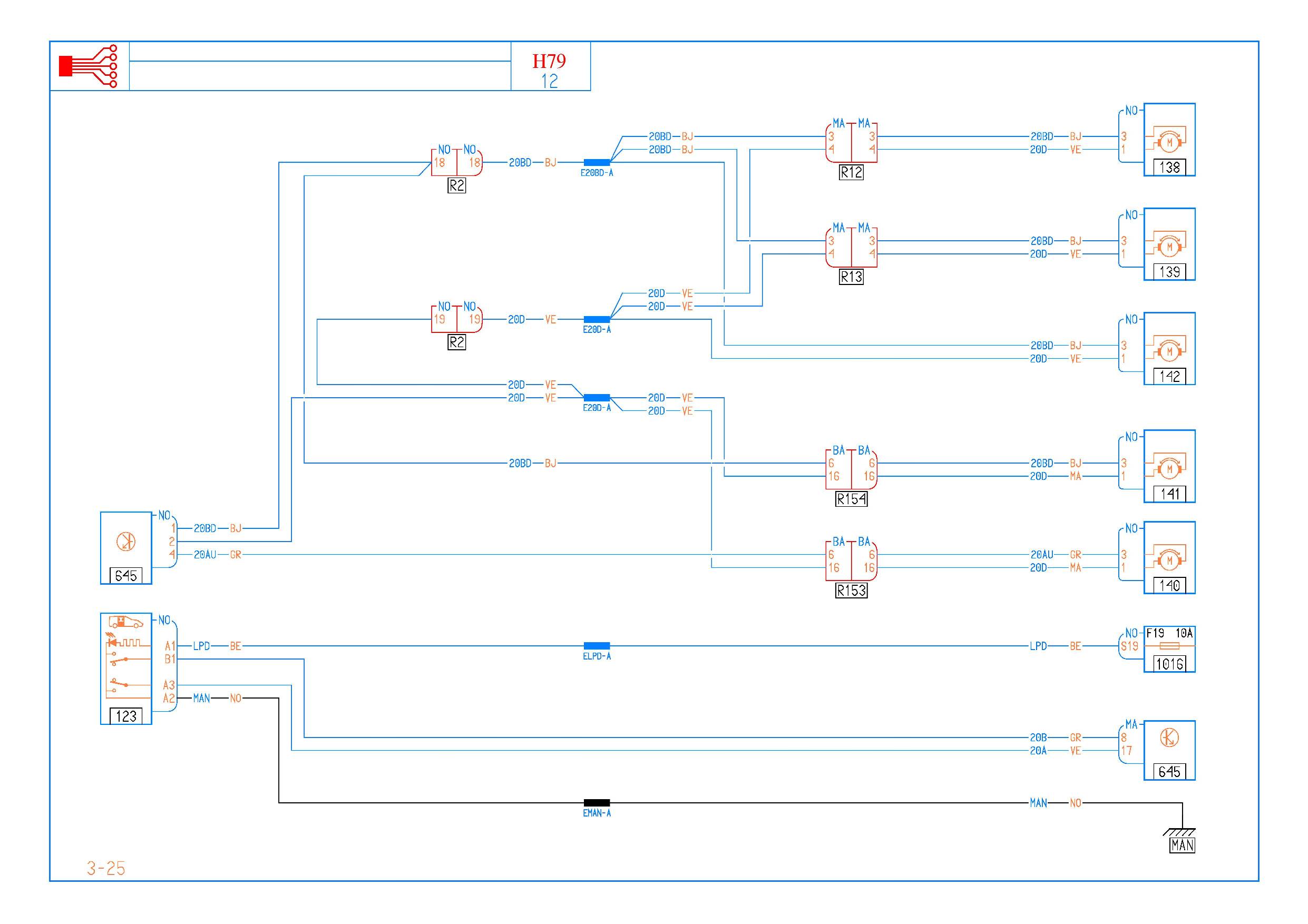 Расположения проводки по салону с цветовой идентификацией проводов на стоп-сигналы.