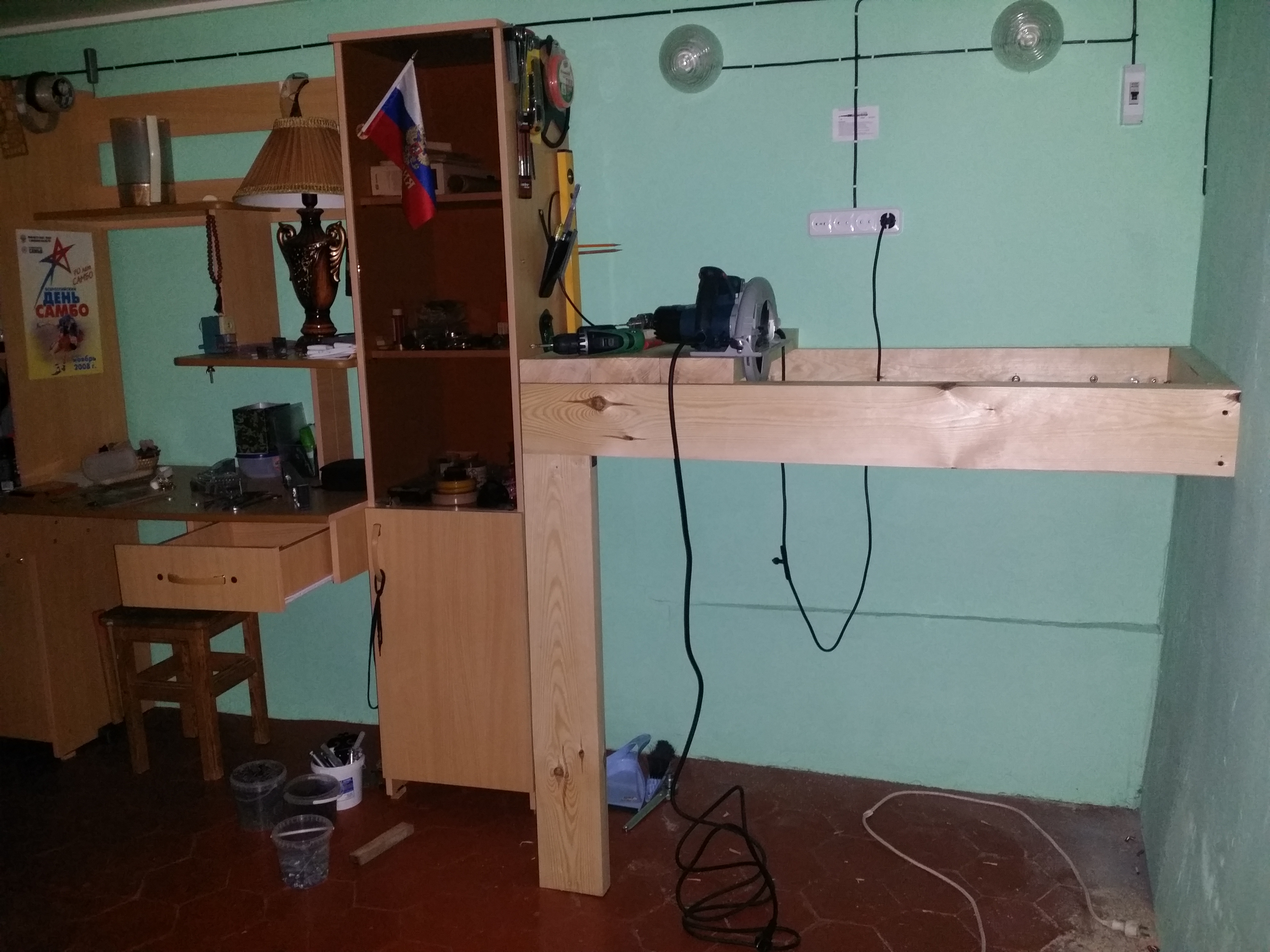 И наконец-то начал делать верстак в сарае/офисе... |