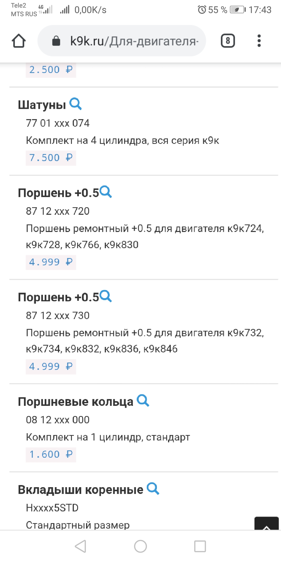 правда ценник на поршень конский,за такие деньги должен быть комплект с кольцами и пальцами.Короче нужно искать но ремонтные есть.+05 г. Москва, ул. Бажова, д. 30 8-909-687-7777 Последний раз редактировалось kval300; 30.09.2019 в 18:20. |
