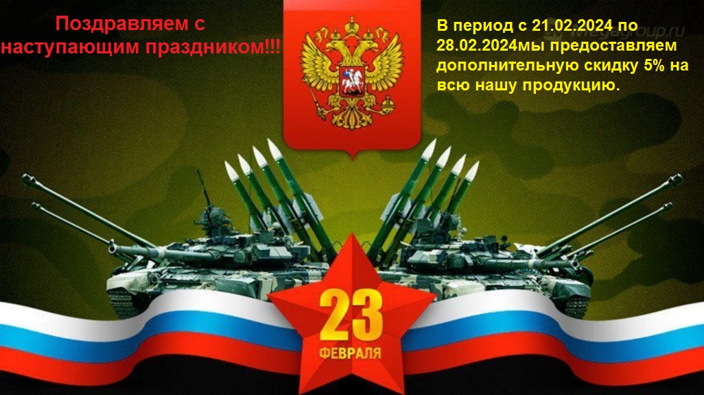 В период с 21.02.2024 по 28.02.2024 мы предоставляем дополнительную скидку 5% на всю нашу продукцию. |