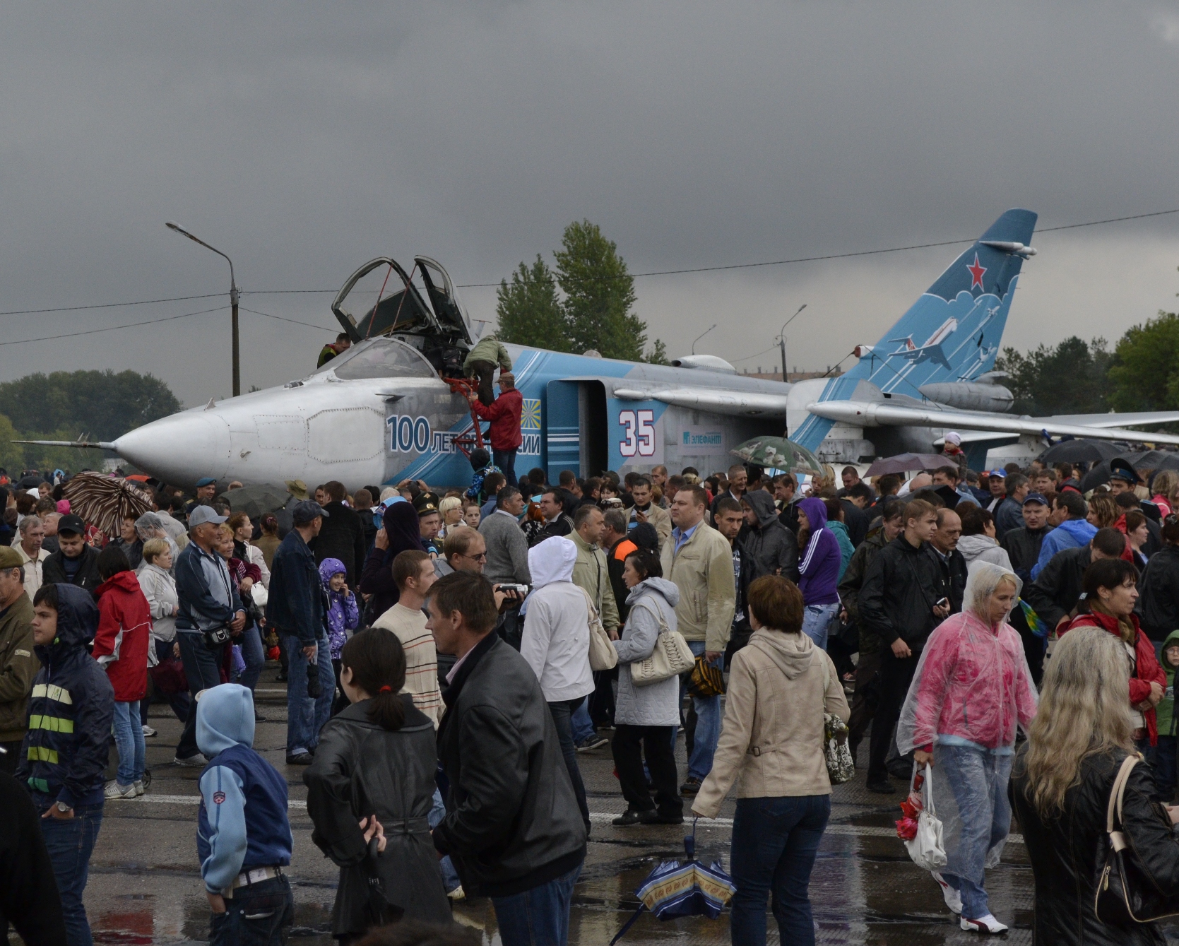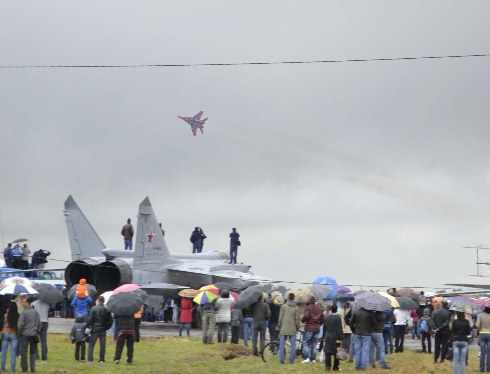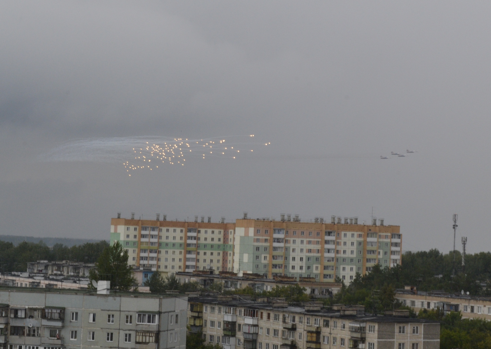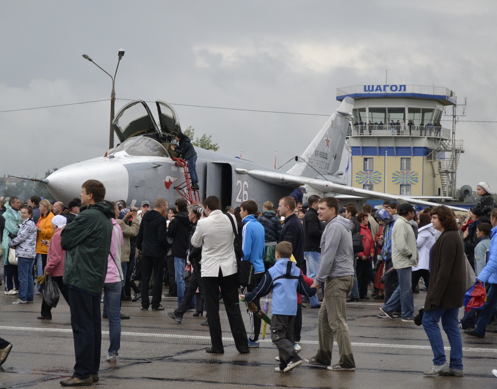 :Праздник авиации ЧВАКУШ (база ШАГОЛ), г. Челябинск Была очень низкая облачность, но одного из "Стрижей" все таки выпустили: Просто фотографии (выставка самолетов). Кто хотел - мог посмотреть, что внутри ![]() Ну на любом празднике, как без них.... Эта фотография снята с балкона жилого дома (ШАГОЛ): |