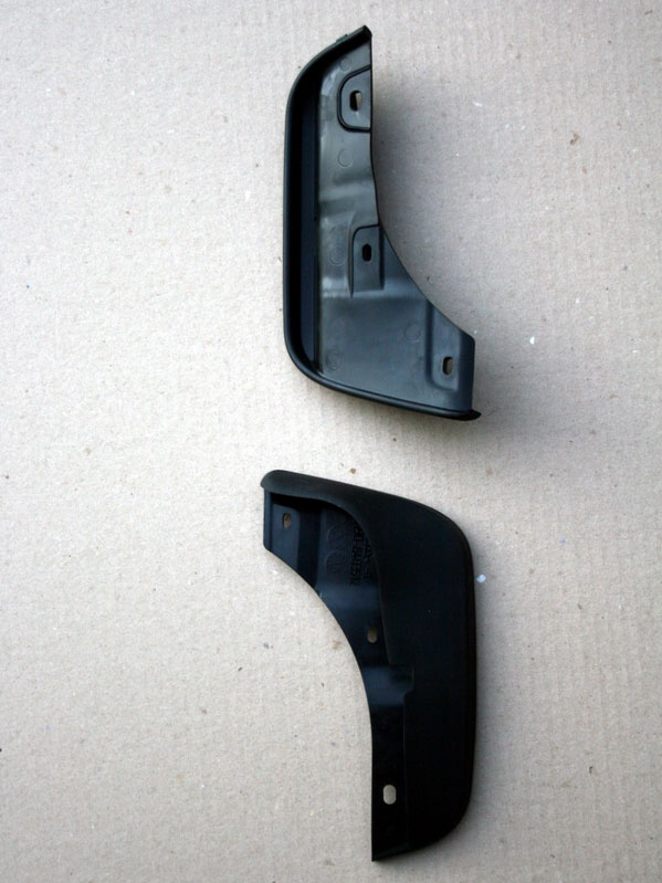 Брызговики от Гранды или Приоры, брал на рынке по виду. Искать помягче и аккуратней при примерке, начинает рватся если жесткие. На фото есть номер детали. Вырезать желательно с постоянной подгонкой по месту. Сейчас бы может резал и крепил немного по другому. Крепил саморезами. Испытать пока не получается нет луж. Получиться выложу все и фото.