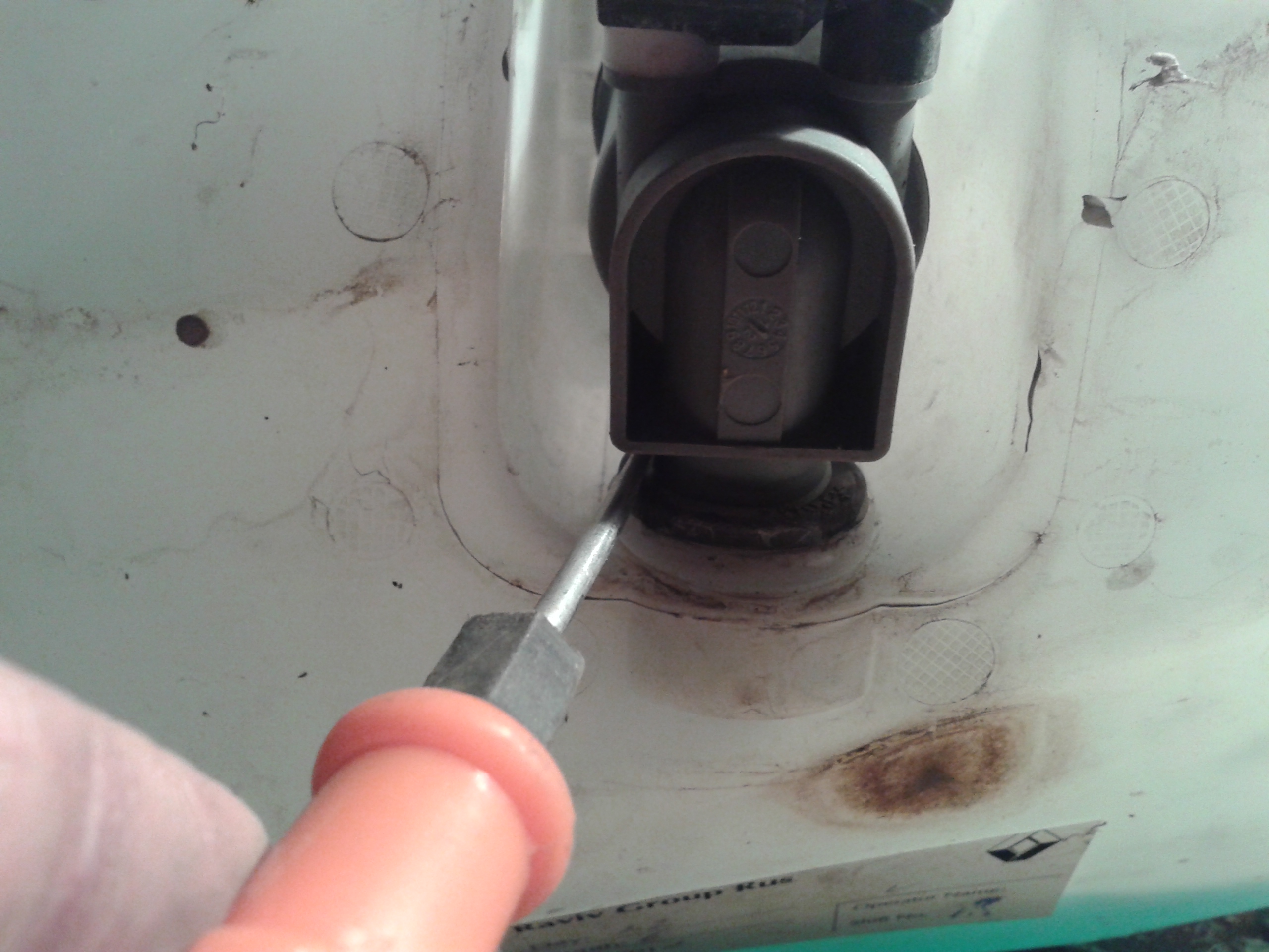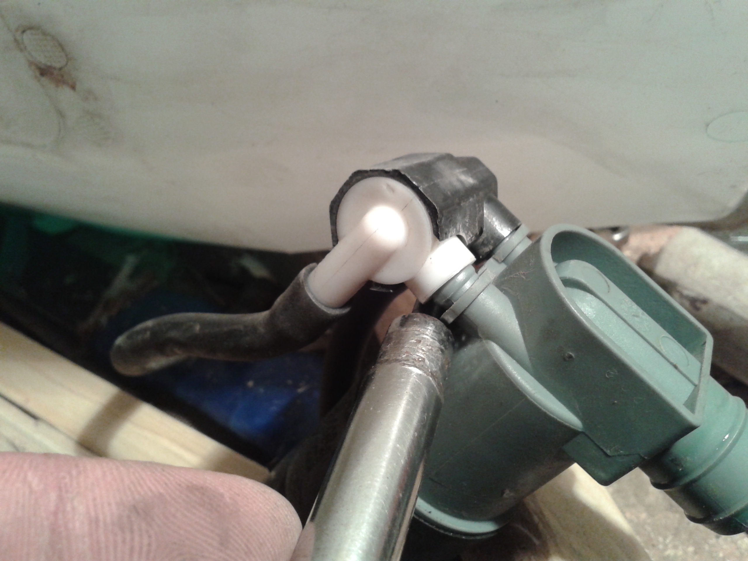 Неисправность - При включении омывания заднего стекла (коротким нажатием), передние форсунки тоже брызгают немножко. Причина. - Засорился клапан насоса омывателя. Устранение - После снятия бачка взял отвертку и потихоньку расшатывая моторчик вытащил его из уплотнительного резинового колпача с сеткой. Затем маленкой отверткой также расшатывая снял клапан. Сразу скажу так как сам чуть не начудил - клапан разбирать не надо (сам попытался, ладно вовремя остановился) Ртом продул клапан и моторчик. Из резиного колпачка в который вставляется моторчик вытащил семя какого то растения (хотя как он туда попал, до сих пор не пойму. И собрал все в обратной последовательности. При установки бочка увидел потертость и на бочке и на железе. Взял карпет самоклейку (что было под рукой), наклеил и поставил его на место. При пробе работы задннй форсунки течи из передних не оказалось. Чуть не забыл при снятии бочка увидел что незамерзайки осталось пол стакана, так что надо ставить датчик уровня ОЖ. В журнале ЗР опечатка, болт откручивается торксом 30. Порядок снятия бачка омывателя. Нажмите здесь, чтобы увидеть весь текст