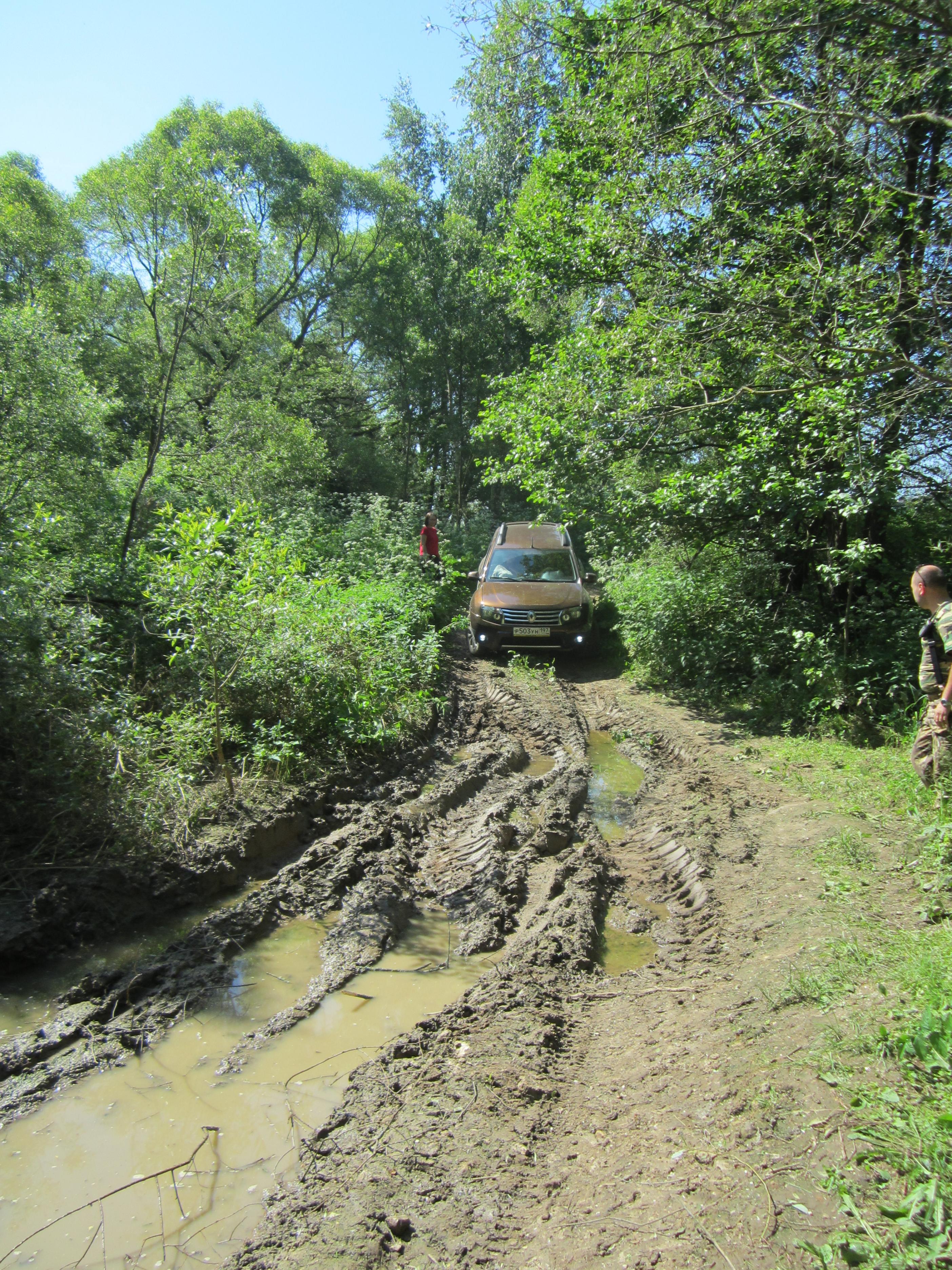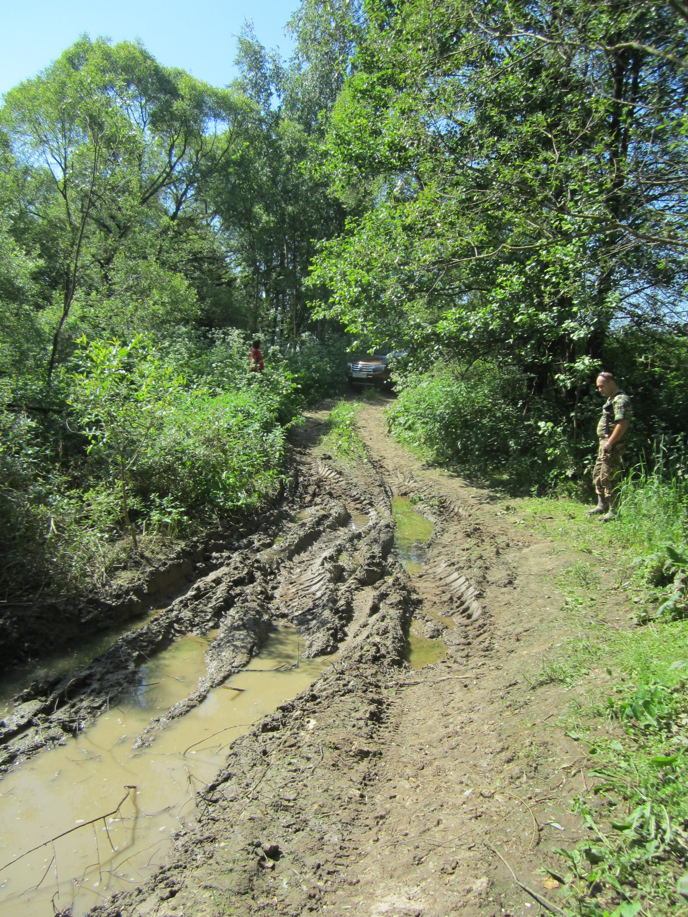 Но были и традиционные грязевые ванны. Первой на пути попалась лужа. Небольшая, но достаточно глубокая.