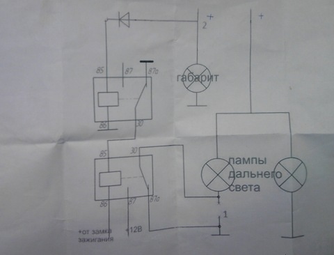Мне не очень хочется ставить диоды около фар (врезаться в проводку в 2-х местах). Проще протянуть один провод в салон. Отсюда и вопрос: с какого контакта из этих 2-х реле взять "+" и протянуть его в салонный блок предохранителей на БС?