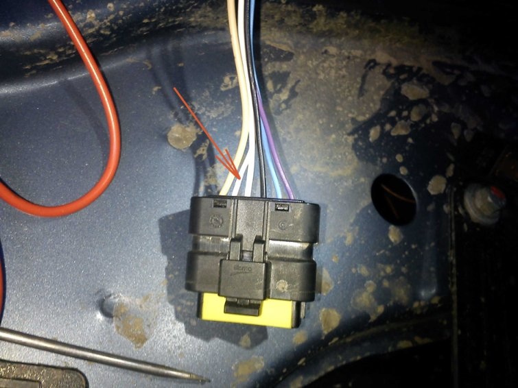 . Из-за разного сечения не стал соединять провода.Провод указанный стрелкой (белый тонкий), тоньше проводов бежевого, белого, чёрного цветов, и одинакового сечения с голубым и фиолетовым. Причина проста, мощность ламп. Габарит (фиолетовый) - 5w Поворотник и ДХО (голубой и тонкий белый) - 15w Ближний и дальний (бежевый и белый толстый) - 55w Чёрный - масса