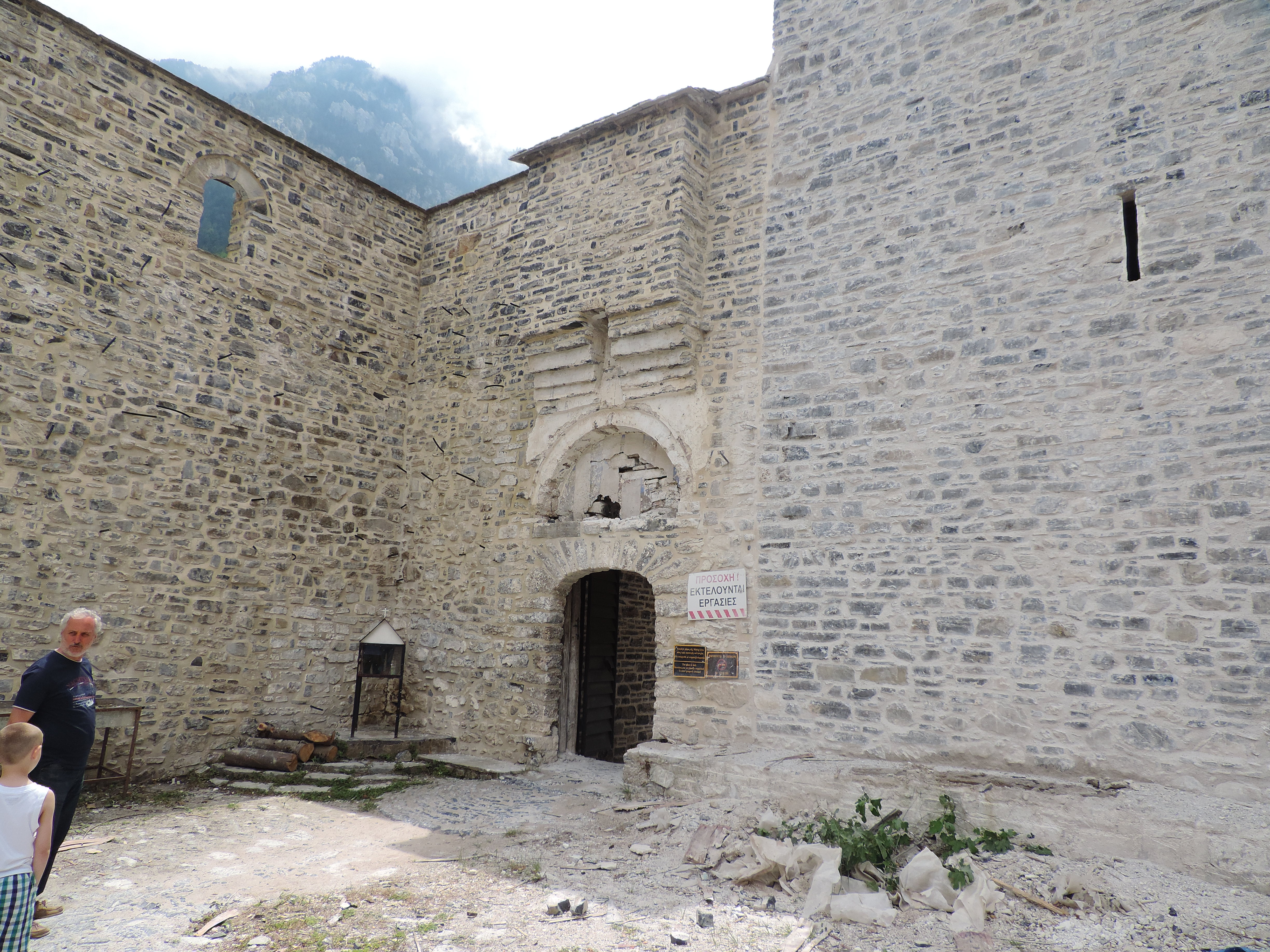 По приезду к монастырю нам сразу не удалось попасть внутрь, там снимался репортаж и нас попросили подойти минут через пять...