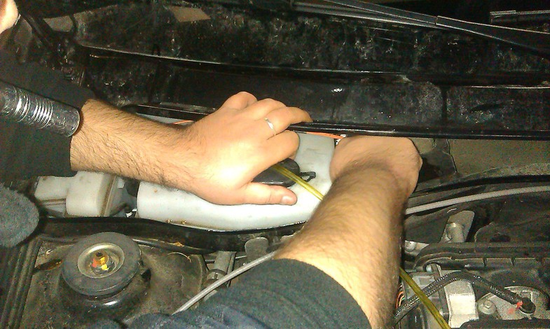Перевернул шланги зеркально , от бачка в сторону упора капота и соединил трубку с тройником...
