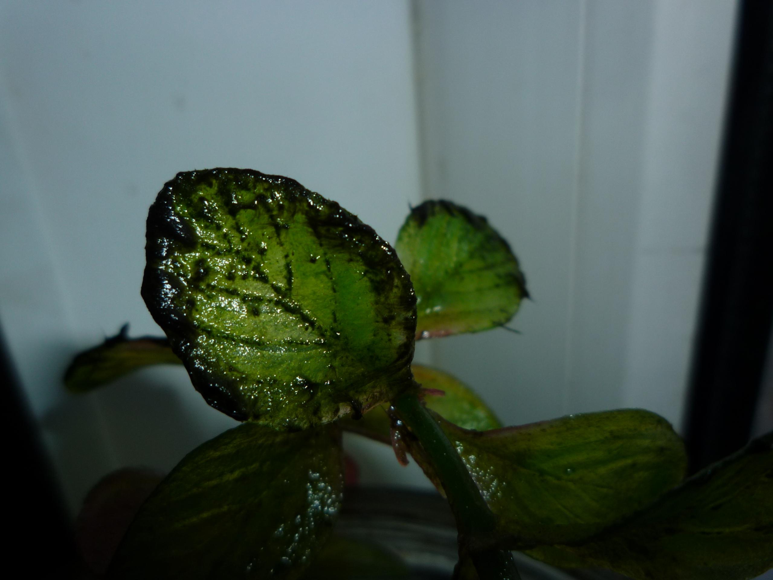 bonch, я почитала форумы аквариумистов, и посмотрела фото сине-зелёных водорослей. Оказалось, что у меня вовсе не эта проблема, а какая-то другая. Сине-зелёные водоросли склизские, нитевидные. А у меня листья растений покрылись какой-то порослью, тёмно-зелёной, похожей на бархат. В основном на краях листиков, в центре меньше.