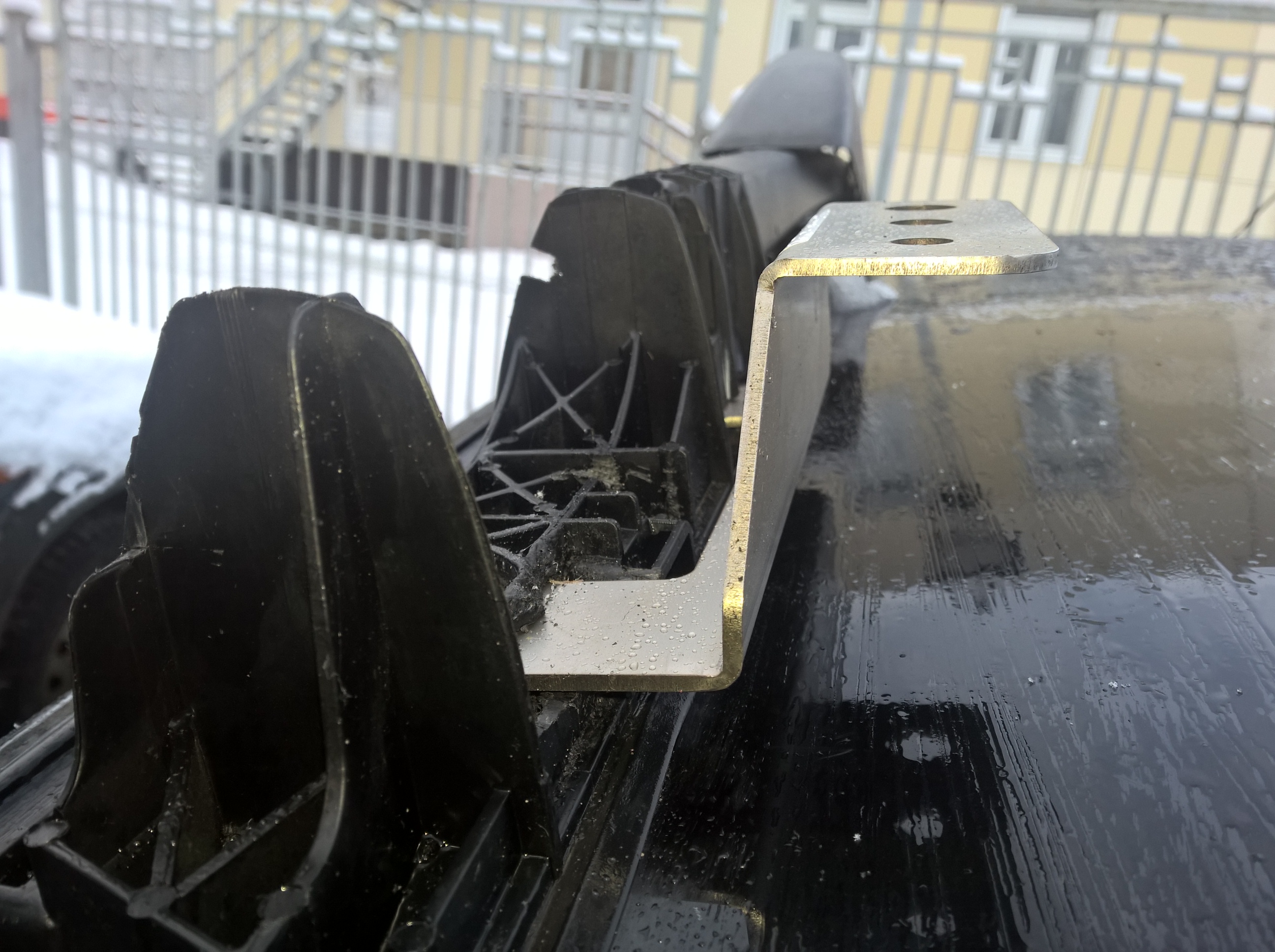 Так как кронштейн был изменен пришлось сделать дополнительное отверстие для винта крепления салазок сиденья.