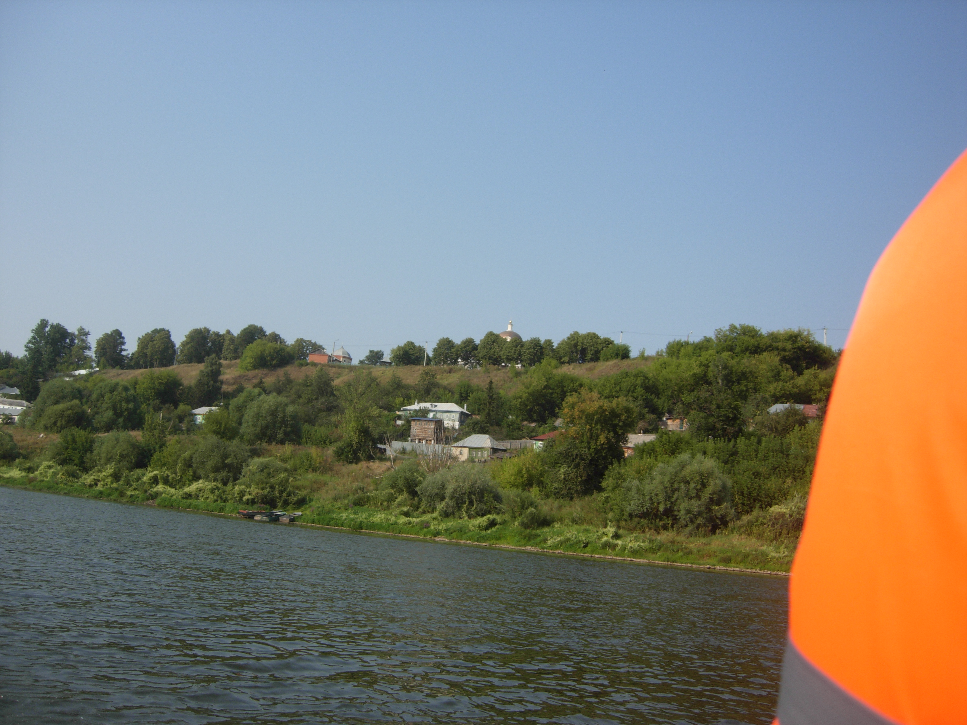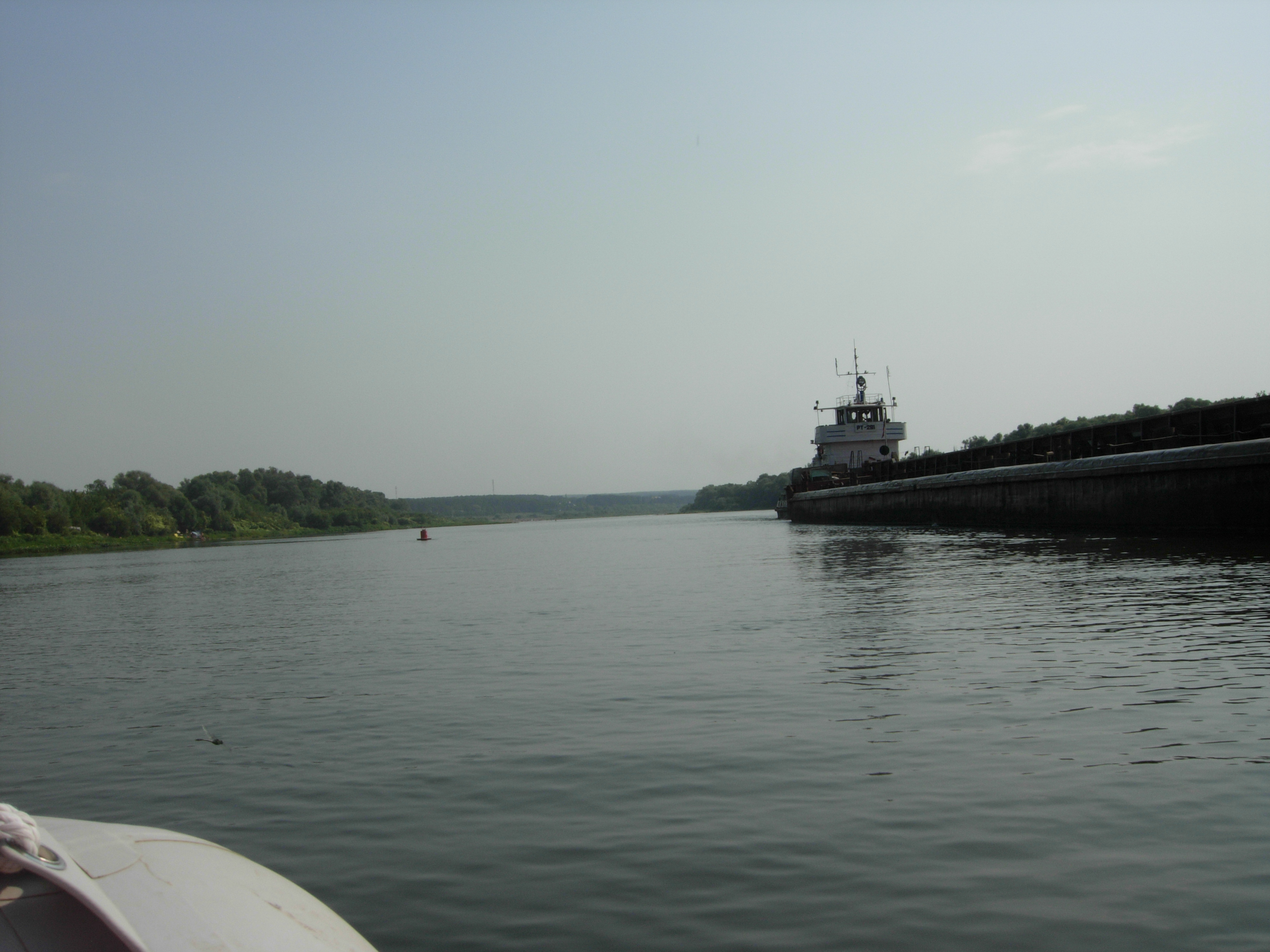 Дима (Окунь) пригласил на водную прогулку по крупнейшей водной артерии Тульской области. Предоставил свой катер, снабдил всех нас индивидуальными средствами спасения на воде и прокатил по изумительнейшим местам. Это было обалденно! Отличная солнечная погода, природа потрясающая, по берегам высоченные сосны, чистый речной воздух одурманивал. Ну, и сама река Ока - это особый мир, отвлекающий от ежедневной суеты и позволяющий полностью слиться с природой. На Оке, по обеим её берегам (один- тульский, другой калужский) отдыхало очень много народу, и на песчаных пляжах, и на разнообразной водной технике. Два раза прошли под мостом - к счастью. Дим, ещё раз от всех нас- Огромной Спасибо! Пристань.