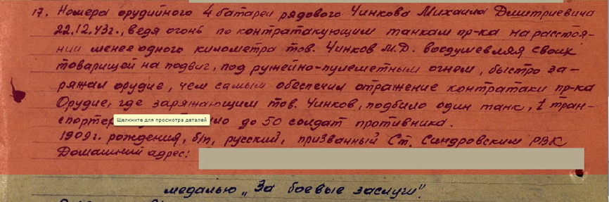 Представление к награде моего деда. Наградили медалью за боевые заслуги