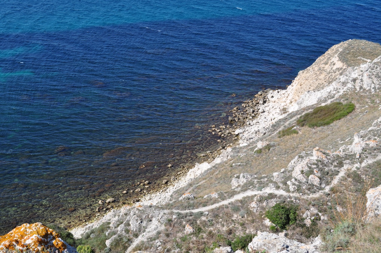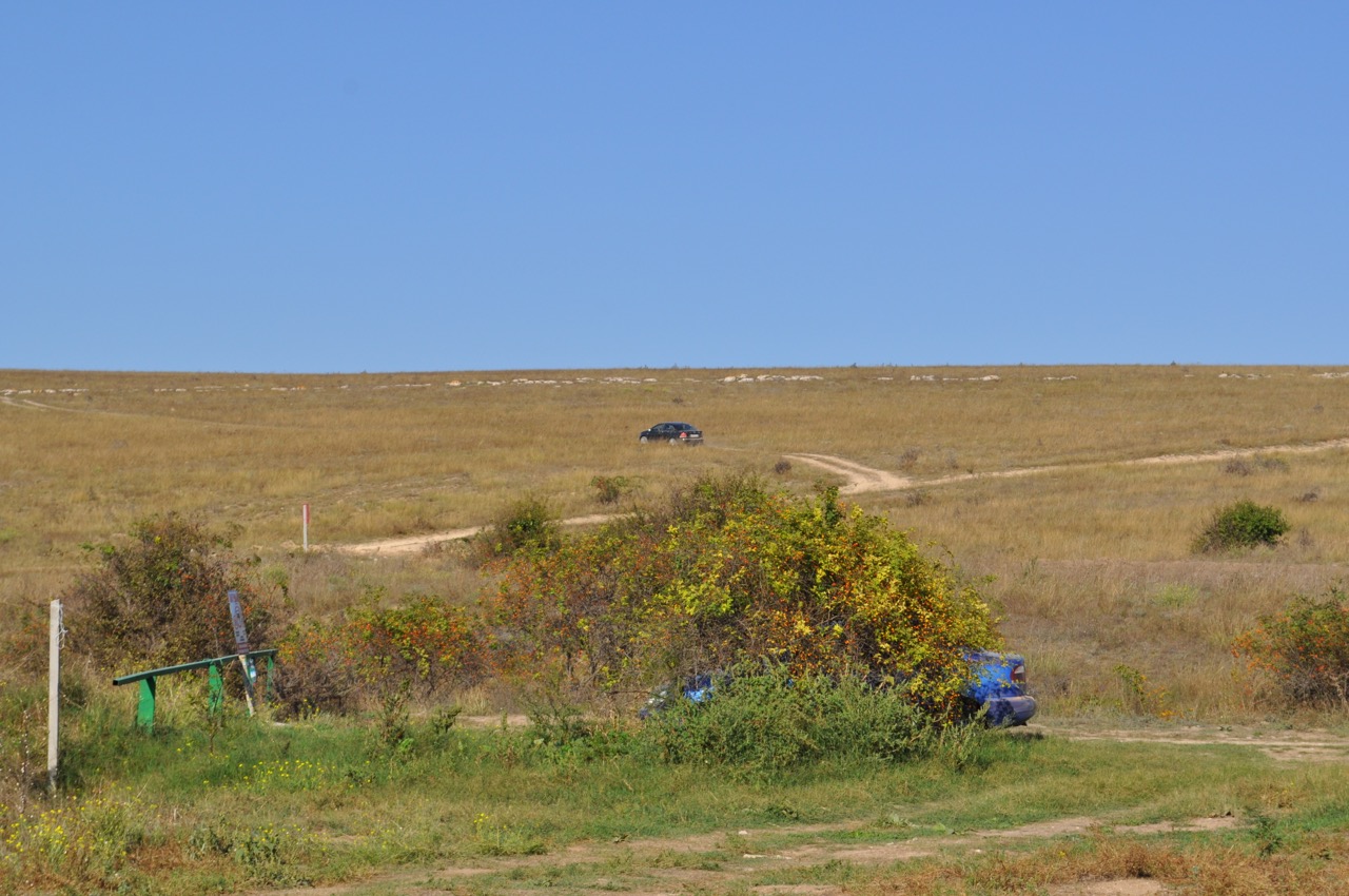 Вид на море, можно было встать ближе к море, но дерево реально спасало от вчерашнего, ночного ветра. Блуждая в темноте я проехался по яме. Она расположилась между деревьев и я честно до сих пор не могу понять как я в ней не застрял. Для наглядности глубины я положил стандартную совковую лопатку. Не забываем что это песок… Я долго смотрел на свои следы и не переставал удивляться. Возможно я так устал вчера, что просто хотел застрять и уснуть. Мы купались в море, оно относительно мелкое и песочное дно, была кефаль, но она появилась после 11, рыбаки пытались ее поймать, но забросить на глубину наверное не могли, наверное по этому они мне в беседе поведали, что кефаль распугали дельфины. Мы позавтракали, покормили ребенка и отправились в строну Тарханкута. По пути я сфотографировал отель в виде замка. В Черноморском я не смог найти нормальное заведения для обеда с парковкой и отправился в Олененку, где отобедали в Баракуде. Держат отель и кафе -украинцы. Они вообще как-то всегда насколько я помню любили эти места. Пообедав появились силы и захотелось приключений, т.к. от Оленевки до Окуневки я уже ездил несколько раз. Взял курс в бухту Очеретай. В бухте было как-то печально, я видел разрушенный коровник и думал, что рядом добывают газ, хотя по карте называется «Узлы приема запуска очистных устройств». Причем рядом с дорогой я точно видел законсервированные скважины, но я в этих делах не разбираюсь. Дальше мы пошли по всем бухтам в сторону Черноморского. Конечно виды красивые, хоть и солнце почти в зените. А какая вода… Мы снова добрались до рыбаков. увеличим фокусным 300=) Джангульское урочище конечно красиво, его надо увидеть. Дальше я спустился к рыболовной базе с заброшенным отелем. Спуск был сложный, подняться я думаю будет без межколесной блокировки очень сложно. Чем собственно и рассказал водителю паджеро который спрашивал как дорога. Возможно есть пути объезда но я их как-то не особо искал. Клиренса мне хватало и я вроде нигде не цеплял. Но без полного привода будет грустно. Некоторые участки сложные -подъемы и спуски крутые попадаются, а также "скальник", по которому требуется идти в натяг. Мне вроде попалось около 9 "балок" (овражки, ущелья идущие к морю). С которых приходилось спускаться и подниматься или/и объезжать. По крайней мере я не видел на своем пути не полноприводные авто. Они появились в Большом Кастеле, но об этом в следующей части. |