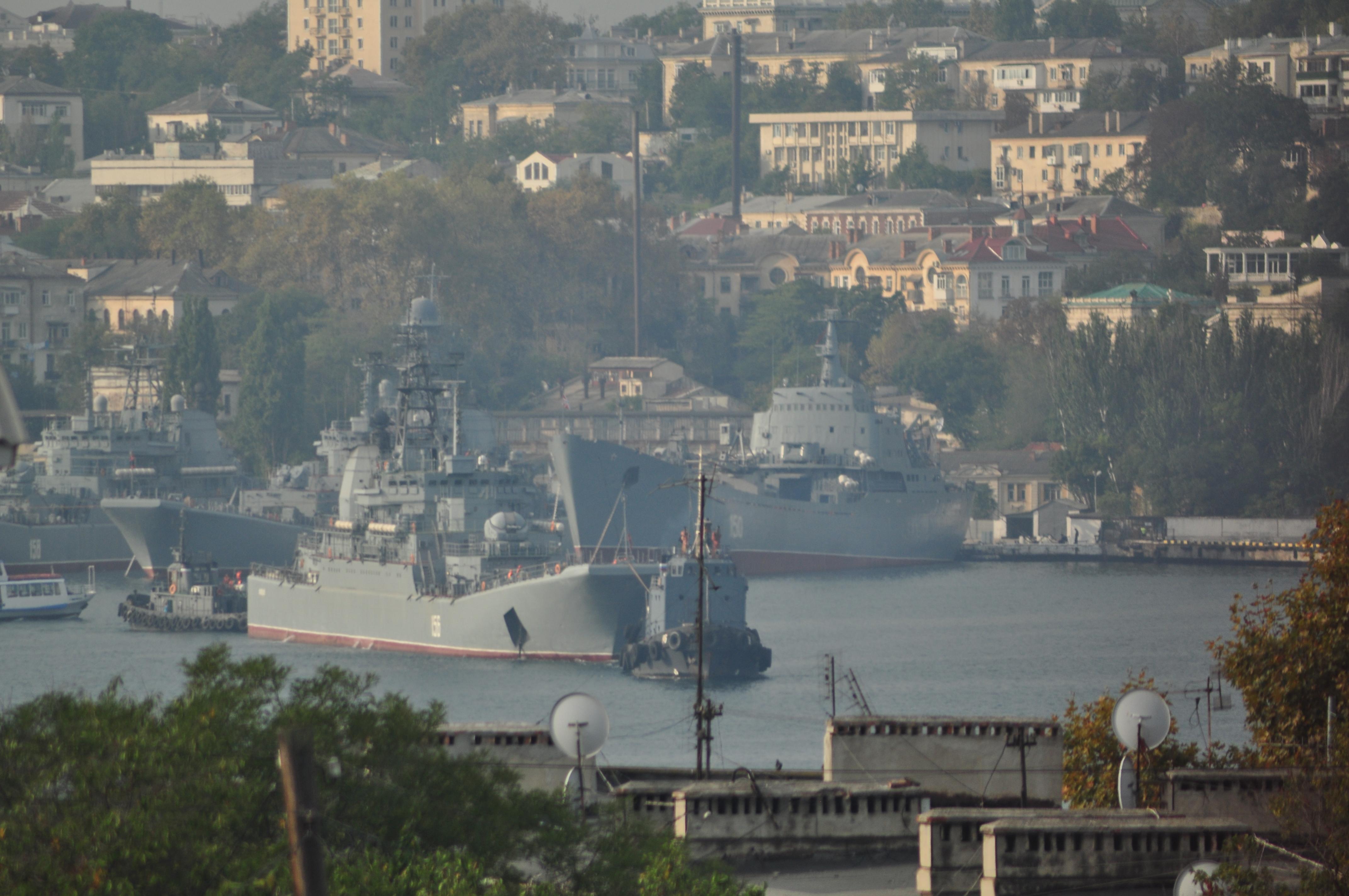 Ямал буксируют по бухте. Так посмотришь на корабли и вроде как-то спокойно. |