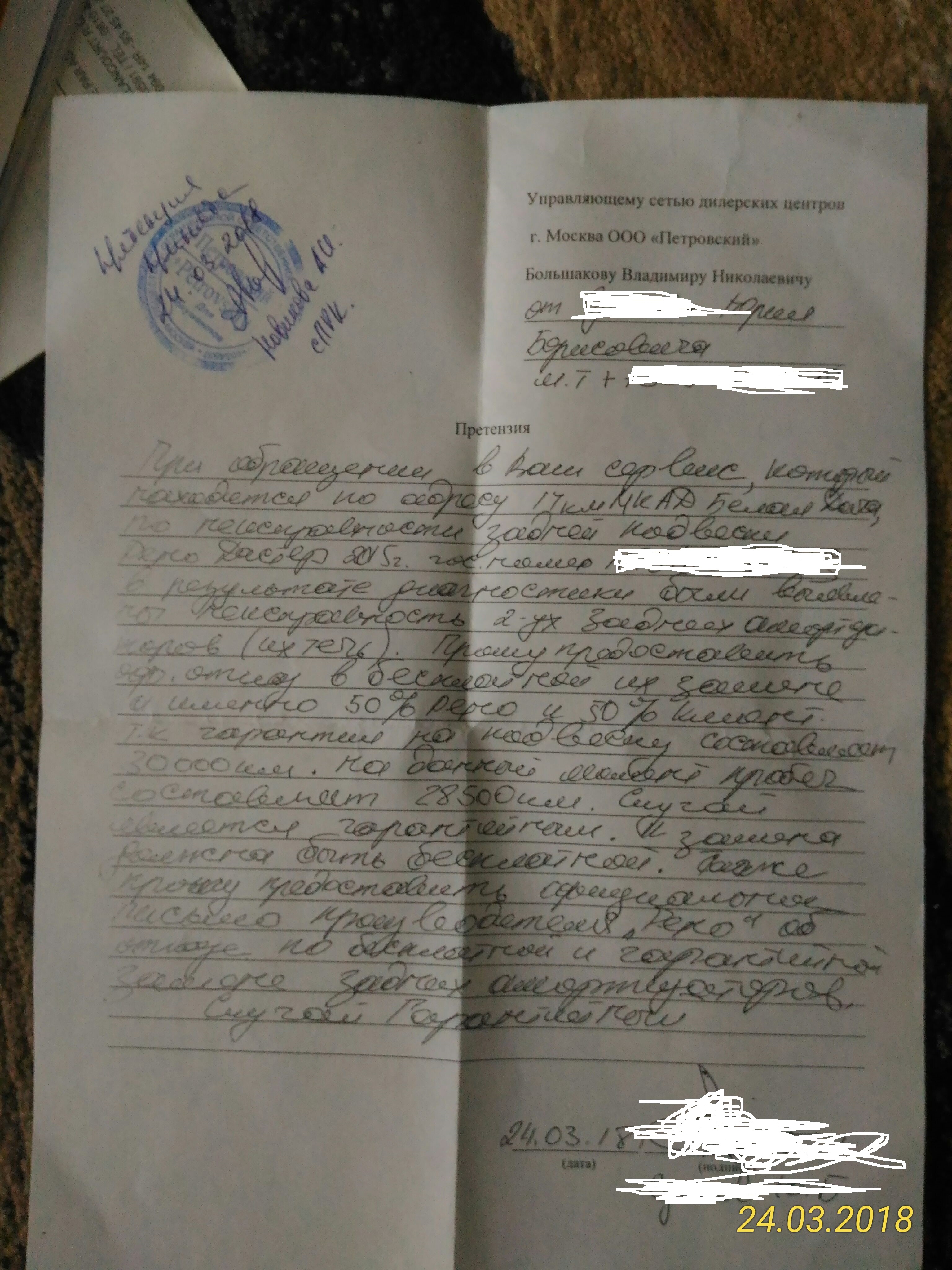 Есть проблема по подвеске Записался к ОД 14 км МКАД Петровский Приехал, стал оформляться, сразу же сказали что если ничего не найдут надо будет заплатить за диагностику ходовой 1200 р. Сказали типа это первый случай по задним АМО. Согласился. Загнали в рем зону, помыли и погнали на подъемник. Сначала покачали без него потом подняли, осмотрели всю ходовку. Перед норма. А вот зад оба АМО в масле, и очень хорошо. Пришел гарантийщик и все отфоткал. И отправили на Рено для решения. После мастер-приемщик сказал что Рено предлагает 50 на 50. Как то быстро решили!!!! 50 % оплачивает РЕНО и 50% я. Я спросил а как же гарантия, на что мне ответили "Это решение Рено" Вот и гарантия на АМО 30 т.км. Говорю дайте оф. отказ рено о бесплатной замене, написал на имя директора, что бы выдали. А еще предлагают продление гарантии. Вот несколько фоток. Можно предоставить мне оф. отказ о замене бесплатно. Заказ -наряд № 00000298069 от 24.03.2018 Пол года назад проходил там же ТО-2 и ни чего не выявили по подвеске. За полгода не реально убить подвеску. Можно ли решить эту проблему по бесплатной замене АМО Спасибо |