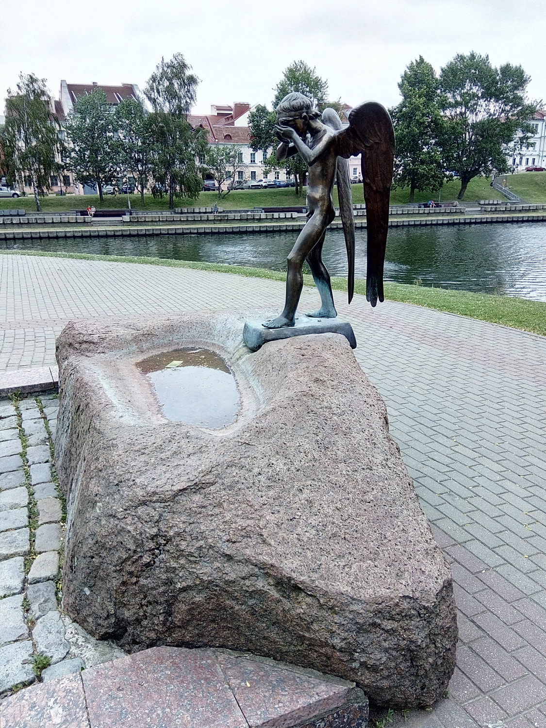 Сразу на входе посетителей встречает бронзовая икона Божьей Матери, вмурованная в камень. На этом камне — текст на белорусском: «Сынам, погибшим в Афганистане, возведен этот храм…» И дальше строки — «Чтобы зла не было ни на своей, ни на чужой земле…» Мемориальная часовня-памятник погибшим в Афганистане Скульптура маленького плачущего ангел-хранителя