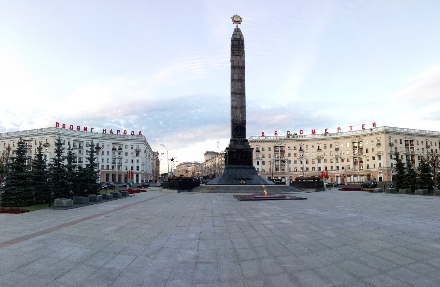 Монумент Победы и Вечный огонь Вид до/после. Очень правильное место - большой и широкий проспект, видно издалека. Внизу, под площадью в подземном переходе
