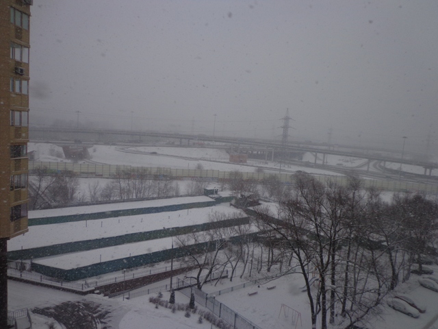 Ну вот и добрался обещанный снег и до Ярославки. За окном 0. МКАД, да и сама Ярославка почти не видны.
