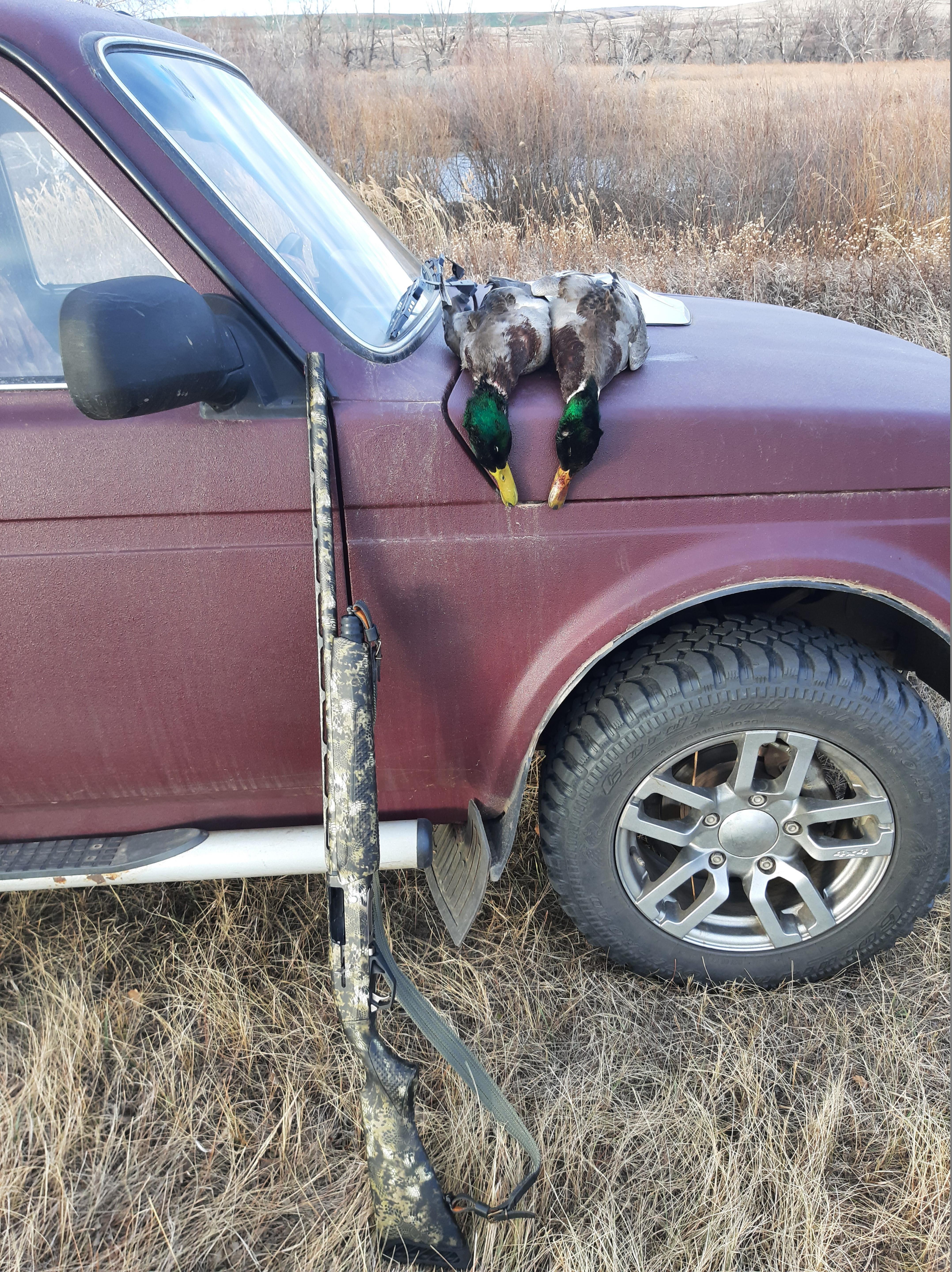 Приобретя лицензию выдвинулся в поля,взял с собой только что приобретённый карабин(без оптики),так как большой надежды на него не было,взял и гладкий,далее всё на видео.:thank_you2: |
