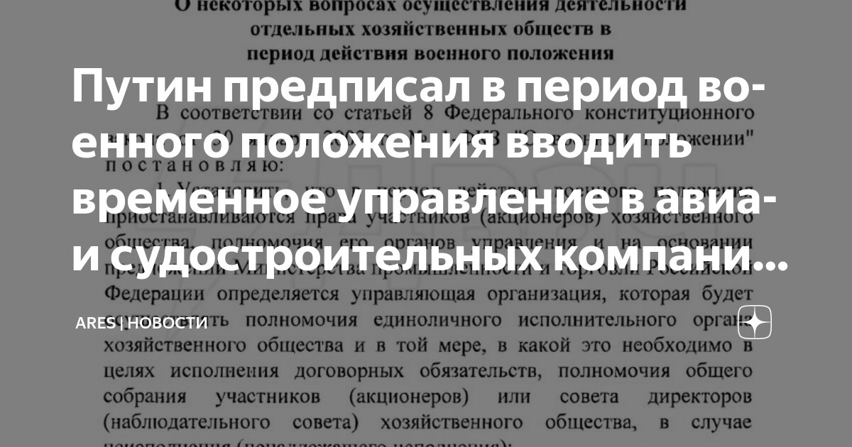 https://avatars.dzeninfra.ru/get-zen...70627/optimize Указ «О некоторых вопросах осуществления деятельности отдельных хозяйственных обществ в период действия военного положения» |