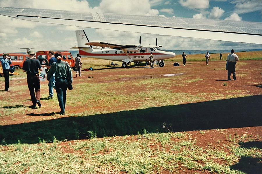 Во первых строках хочу перед всеми ценителями авиации повиниться... :( за качество снимков. Ребята это были мои первые кадры. Уезжая в Кению взял у соседа пленочную мыльницу, получил указание как менять пленку и на что нажимать... А как строить кадр, что такое экспозиция, когда вспышка нужна, а когда нет это все я узнал гораздо позже... :) т.ч. Дуглас у меня получился каким то фрагментарным. :mda: Эх, меня бы сейчас туда... :sarcastic:
