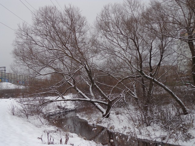 В 7.00 из окна казалось, что снега привалило немерено, но когда пошли гулять с Вериской по нашему большому кругу на берегу Ички, то оказалось вот что: